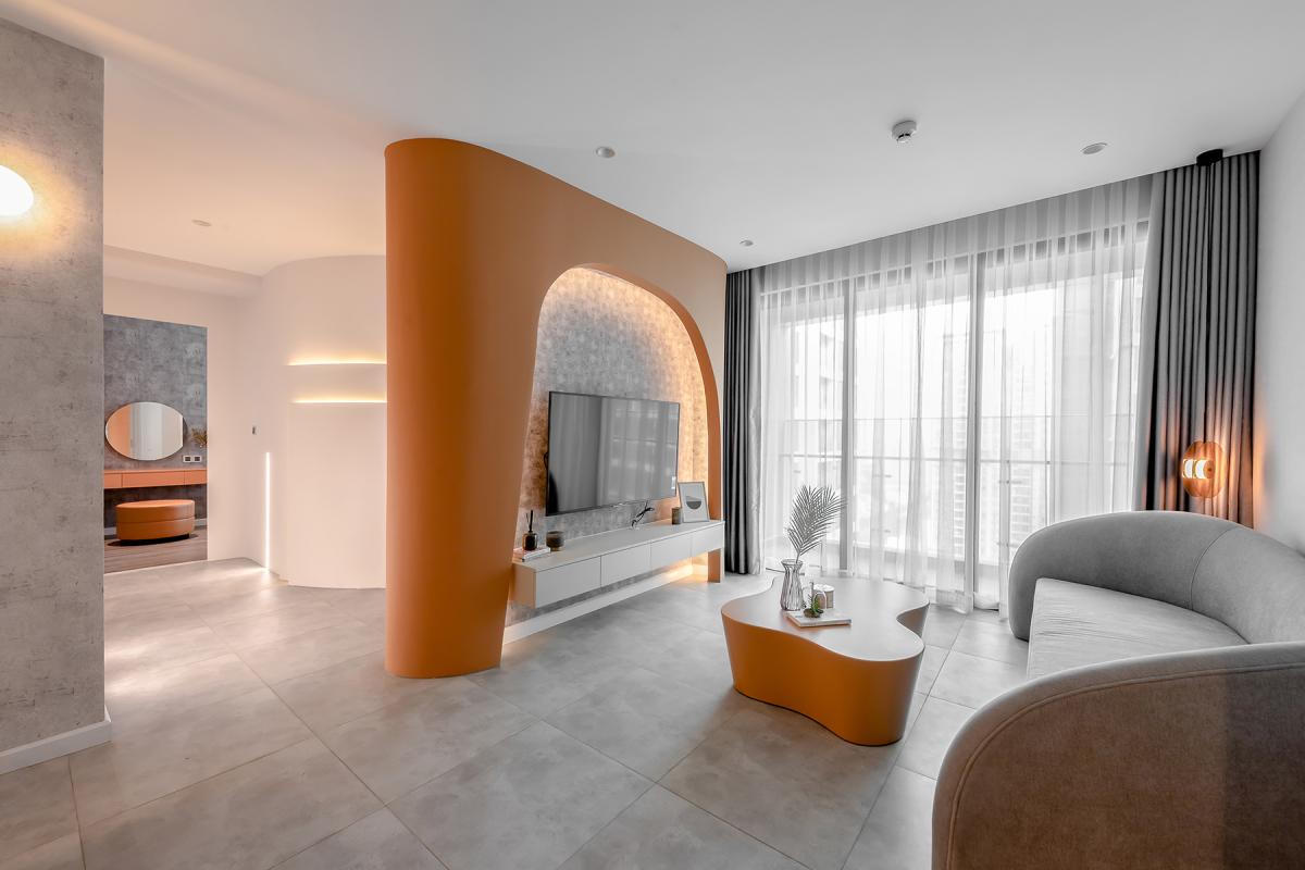 Nội thất trong căn hộ 74 m2 tại quận 2 được thiết kế và sử dụng tông màu lấy ý tưởng từ hẻm núi Grand Canyon ở Mỹ.