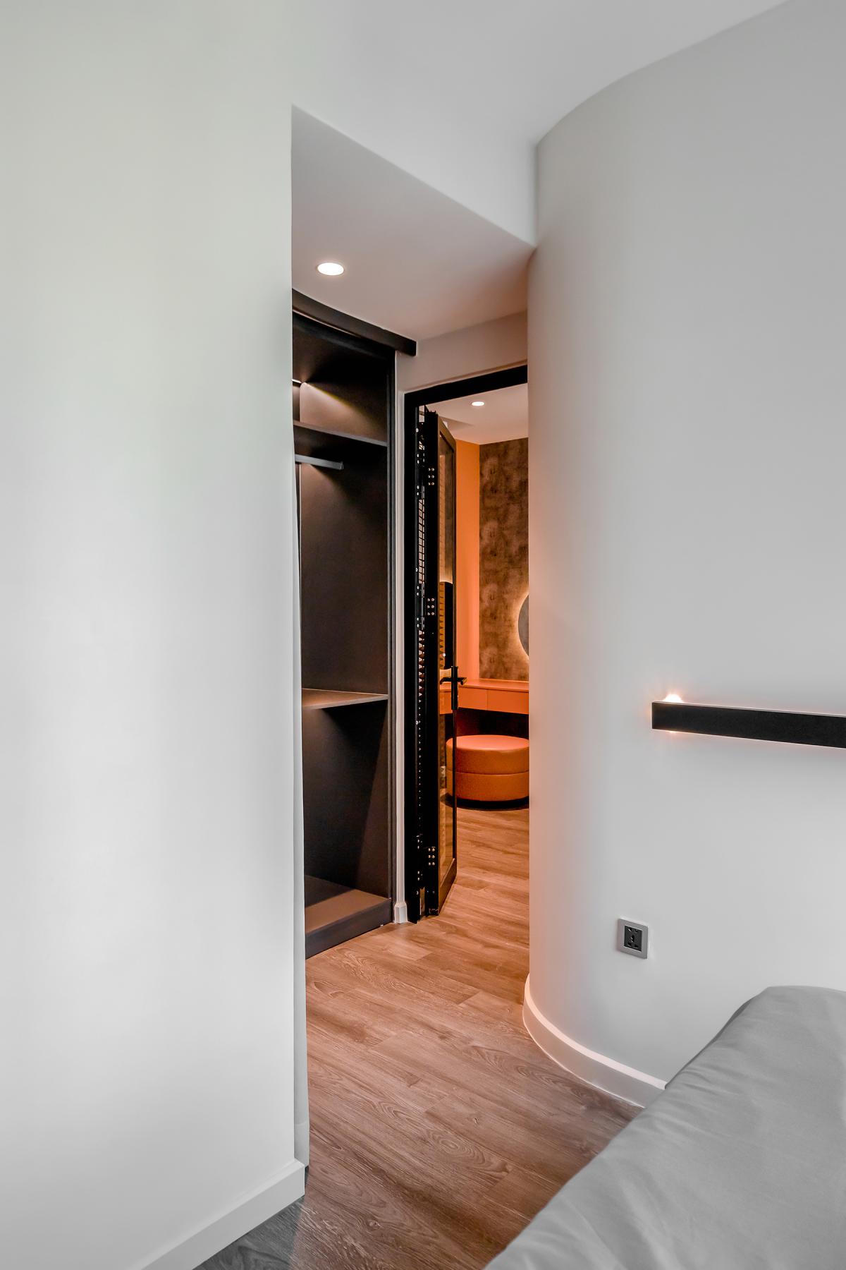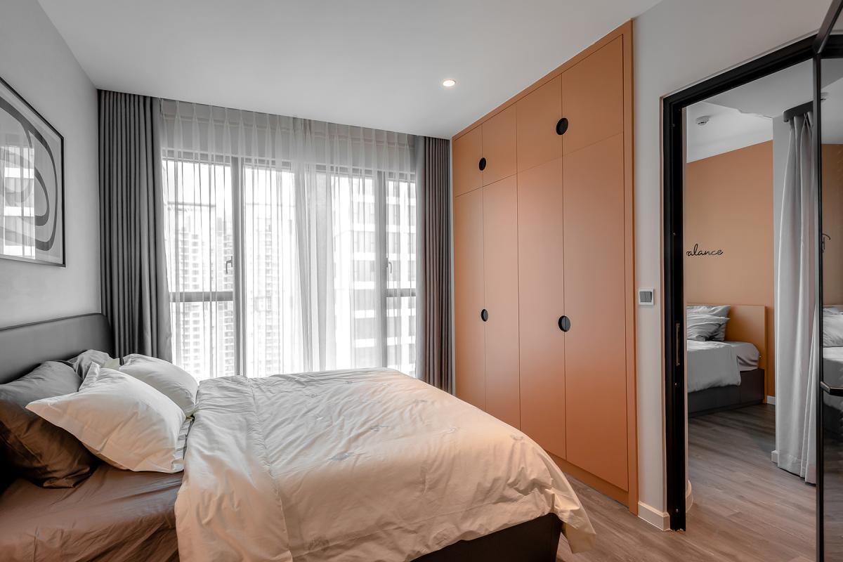 Phòng thay đồ được kết hợp cùng phòng ngủ nhỏ với lối đi thông qua phòng ngủ chính làm tăng cảm giác rộng rãi nhưng vẫn đảm bảo được công năng của căn hộ.