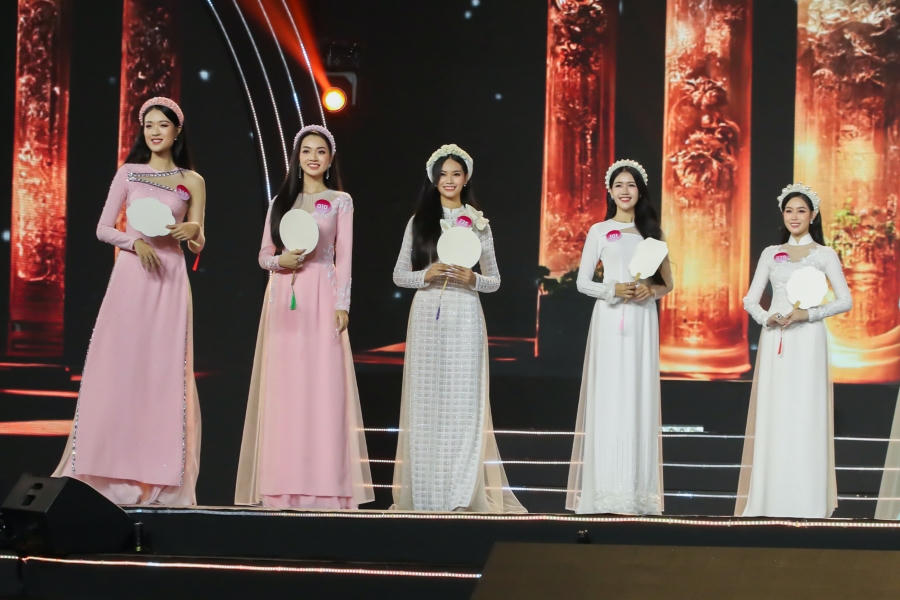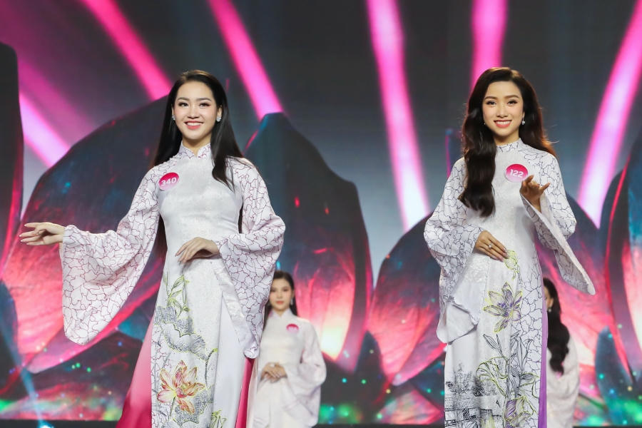 Sau đó, top 56 thí sinh bước vào vòng thi đầu tiên của đêm chung khảo là trình diễn áo dài. Các cô gái được chia thành từng nhóm, lần lượt catwalk với trang phục của nhà thiết kế Song Toàn, Đặng Trọng Minh Châu và Việt Hùng. Dù hầu hết các thí sinh là những gương mặt mới, chưa hoạt động trong lĩnh vực giải trí, song tất cả đều nỗ lực trình diễn trên sân khấu.