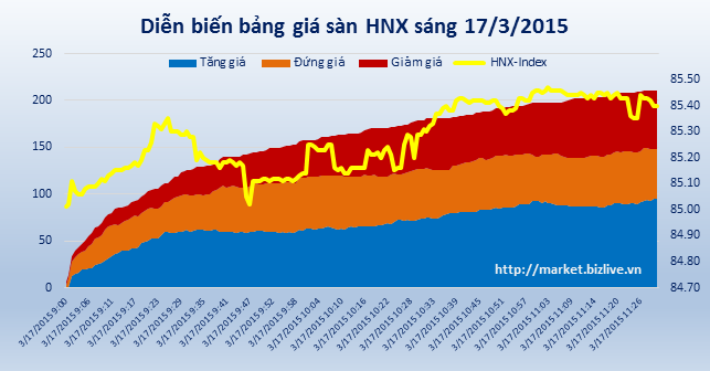 Chỉ số HNX-Index đóng cửa phiên tăng 0,32 điểm, tương đương 0,38%, đứng mức 85,4 điểm.