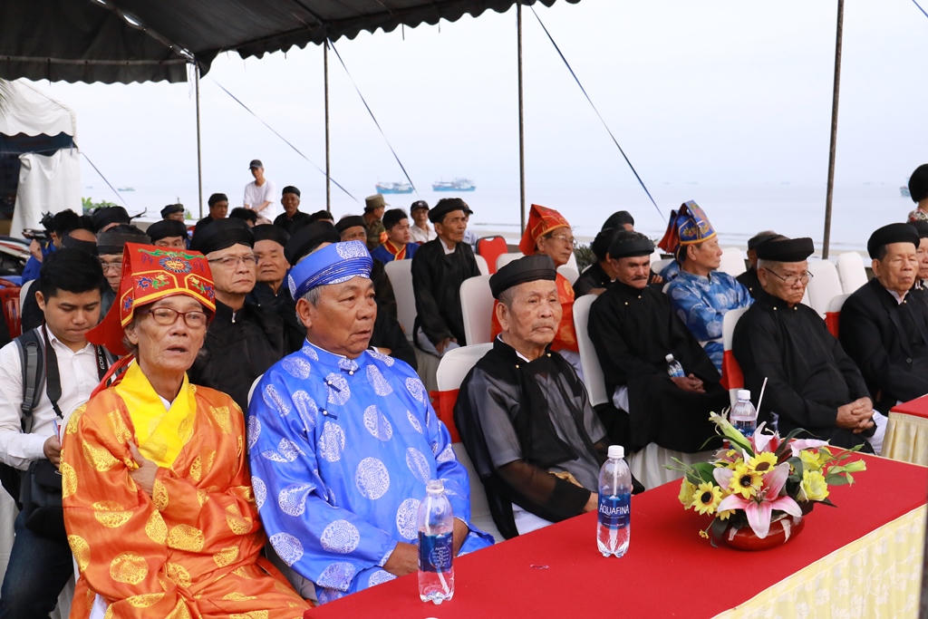 Tại buổi lễ, dân làng chọn ra một ban nghi lễ gồm các cụ cao niên, hiền đức, có uy tín với bạn chài và không bị mắc tang chế. Vị chánh bái dâng đồ tế lễ (không được dùng hải sản) và đọc văn tế nói lên lòng biết ơn của dân làng đối với công đức Cá Ông và cầu mong mùa đánh bắt bội thu, thuyền bè đi khơi về lộng an toàn.