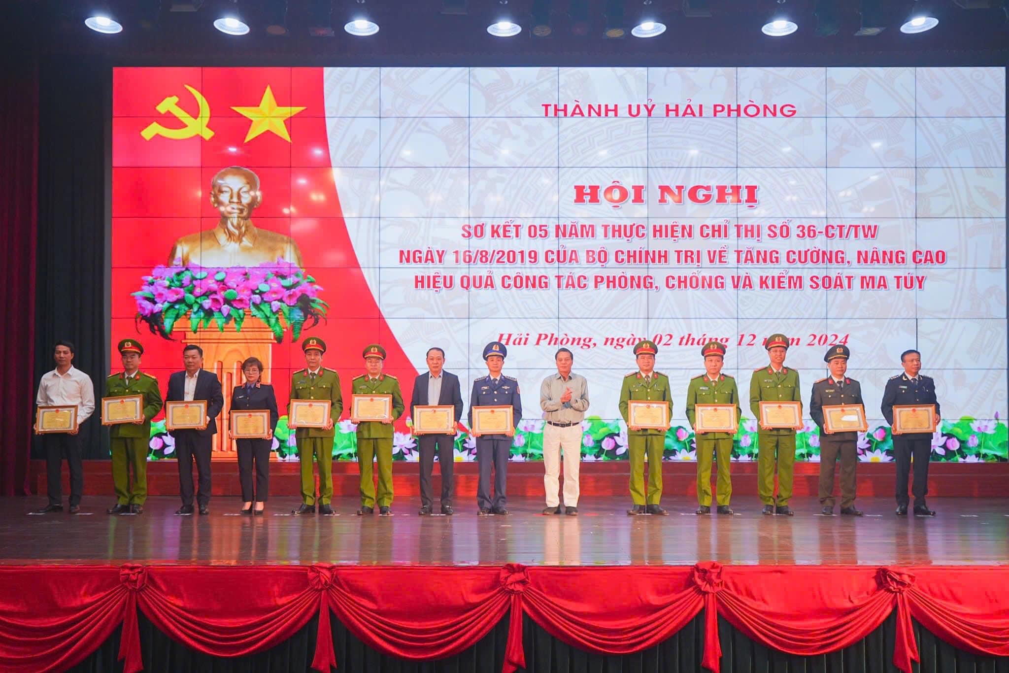 Nhân dịp này, UBND TP Hải Phòng đã trao Bằng khen tặng 19 tập thể và 14 cá nhân có thành tích xuất sắc trong thực hiện Chỉ thị số 36 của Bộ Chính trị về công tác phòng, chống ma túy.