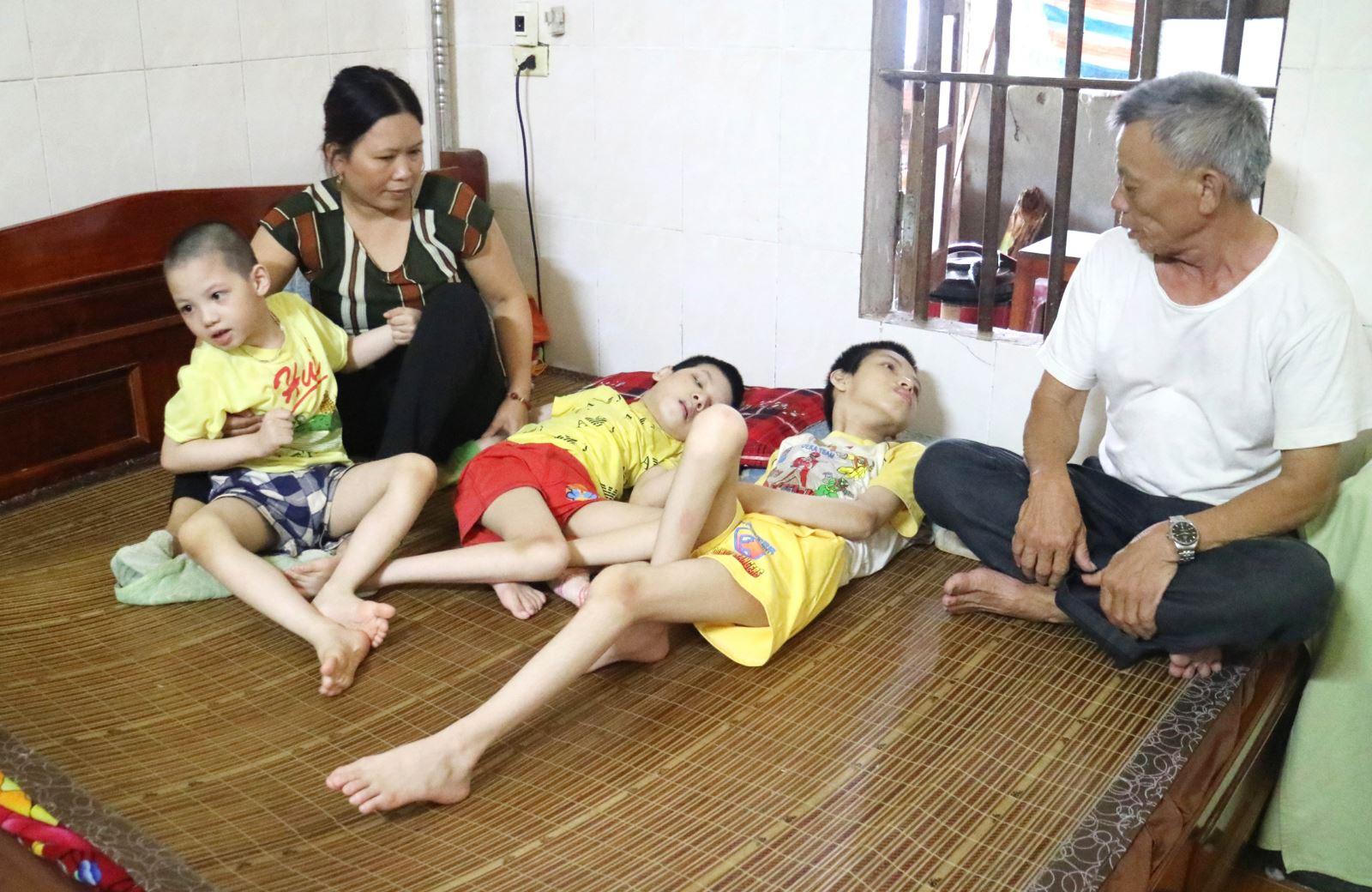 Gia đình chị Phạm Thị Thủy, xã Cẩm Thạch, huyện Cẩm Xuyên (Hà Tĩnh) có ba con bị di chứng CĐDC. |
