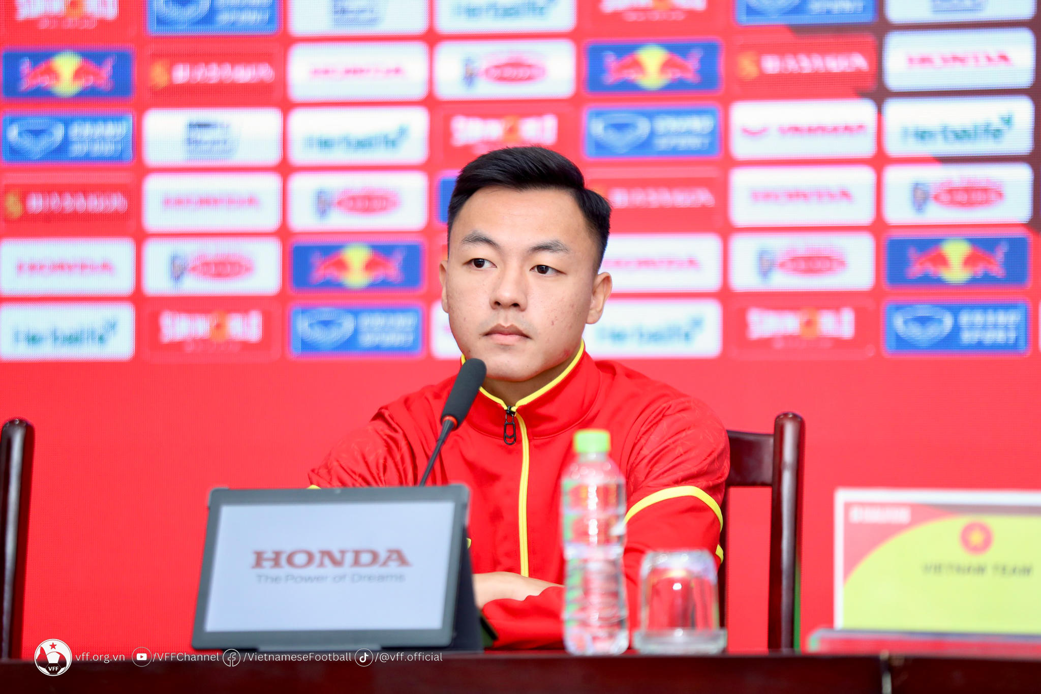Cùng tham dự họp báo với HLV trưởng Philippe Troussier, tiền vệ trẻ Nguyễn Thái Sơn phát biểu: “Iraq là đối thủ mạnh. Họ vừa thắng Indonesia 5-1. Toàn đội nghiên cứu kỹ về đối thủ và chuẩn bị tốt cho trận đấu. Lợi thế của đội tuyển Việt Nam là thi đấu trên sân nhà và nhận được sự cổ vũ của cổ động viên. Mục tiêu của toàn đội là cố gắng thi đấu hết mình”