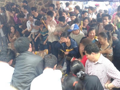 Cũng theo nhiều du khách thì vào những ngày đầu năm, lượng người vào thắp hương ở điện chính rất đông, tại đây có một đội ngũ các “thầy” chuyên cúng thuê, khấn thuê thường đứng chen ngay phía trước, khiến các du khách muốn thắp một nén nhang cũng khó.