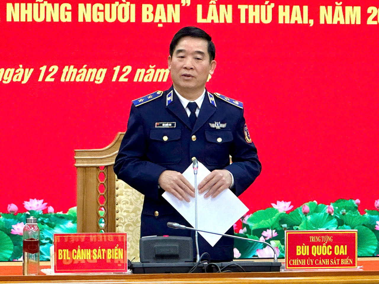 Tại buổi gặp mặt, Trung tướng Bùi Quốc Oai - Chính uỷ Cảnh sát biển Việt Nam cho biết, chương trình giao lưu Cảnh sát biển Việt Nam và những người bạn lần thứ hai 2024 sẽ diễn ra từ ngày 17-21/12 tại Thủ đô Hà Nội. Chương trình có sự tham gia của lực lượng thực thi pháp luật trên biển 7 nước, gồm: Ủy ban Quốc gia An ninh Hàng hải Campuchia; Cục Cảnh sát biển Trung Quốc; Cảnh sát biển Indonesia; Cơ quan thực thi pháp luật trên biển Malaysia; Lực lượng Bảo vệ bờ biển Philippines; Trung tâm Chỉ huy Hàng hải Thái Lan và Cảnh sát biển Việt Nam.