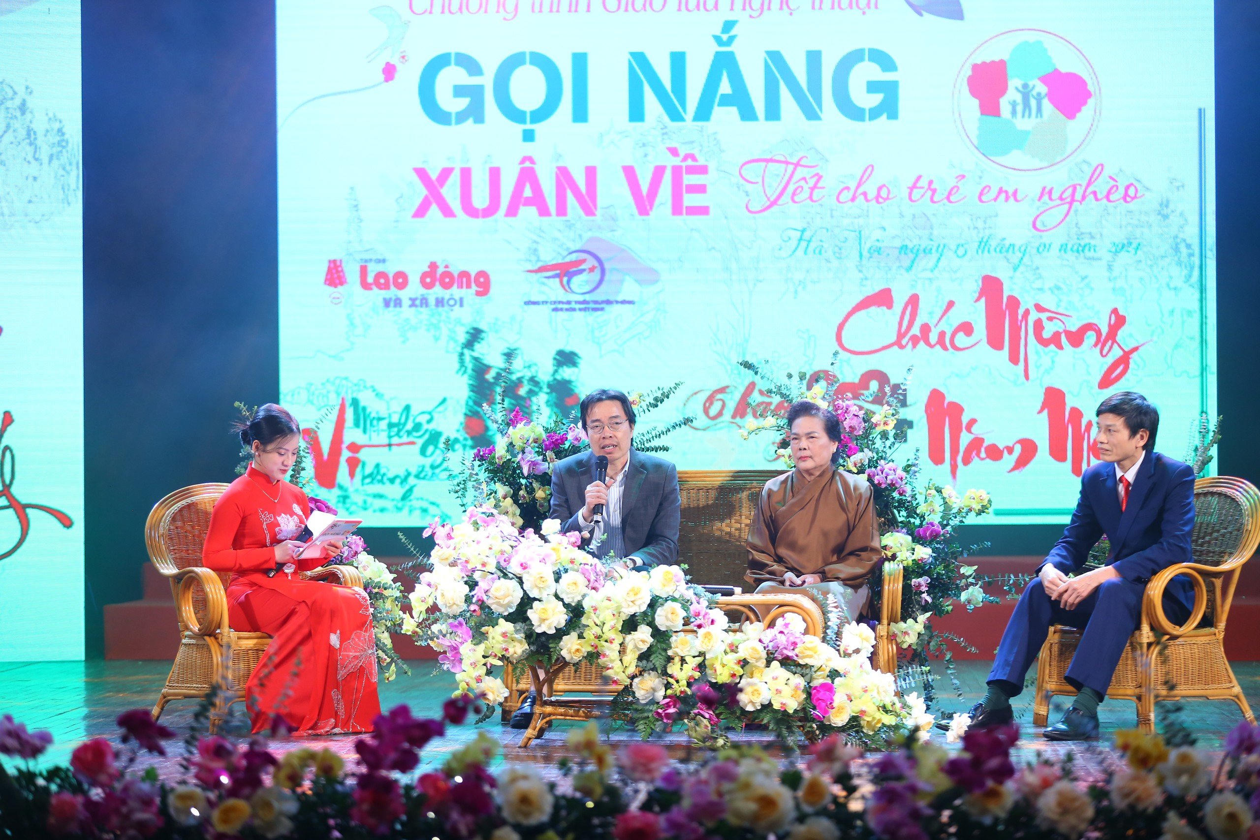 Tối 15/1 tại Nhà hát Âu Cơ (Hà Nội), nhân dịp chào đón năm mới 2024, Bộ Lao động - Thương binh và Xã hội giao Tạp chí Lao động và Xã hội phối hợp với Công ty CP Phát triển Truyền thông Văn hóa Việt Nam cùng các đơn vị liên quan tổ chức Chương trình giao lưu nghệ thuật Gọi nắng Xuân về, với chủ đề "Tết cho trẻ em nghèo" lần thứ nhất. Chương trình được truyền hình trực tiếp trên sóng VTC6 – Đài Truyền hình Kỹ thuật số VTC.