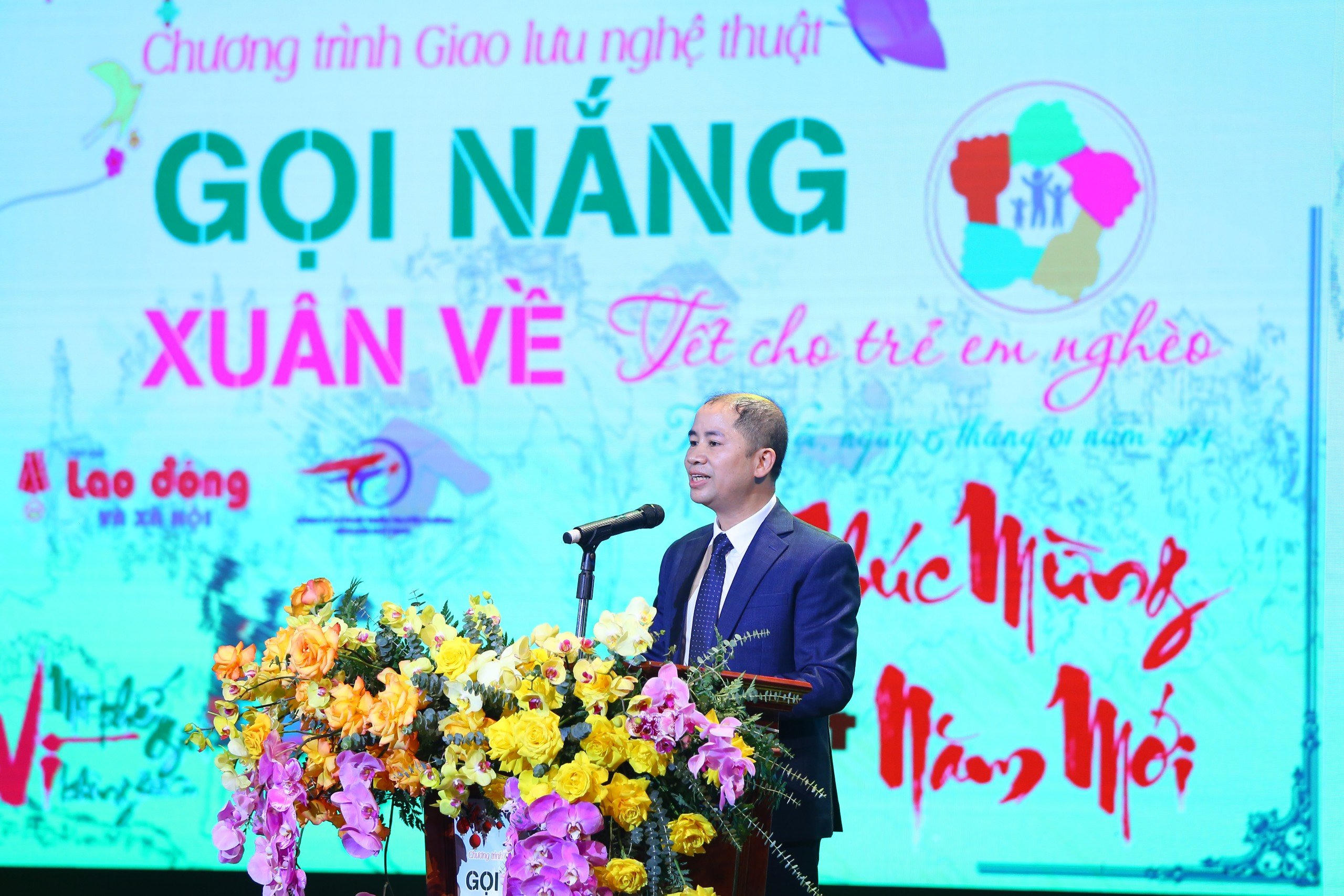 Phát biểu khai mạc, ông Bùi Đức Tùng, Phó Tổng biên tập phụ trách Tạp chí Lao động và Xã hội, Trưởng Ban Tổ chức cho biết, Chương trình Gọi nắng Xuân về, với chủ đề "Tết cho trẻ em nghèo" là chuỗi những hoạt động tuyên truyền, vận động xã hội, kết nối trái tim với trái tim; mang tính nhân văn sâu sắc, nhằm đẩy mạnh xã hội hóa công tác “Bảo vệ, chăm sóc và giáo dục trẻ em”, nhất là trẻ có hoàn cảnh đặc biệt khó khăn, trẻ em nghèo, trẻ em khuyết tật, trẻ em mồ côi không nơi nương tựa, trẻ em vùng sâu, vùng xa, vùng dân tộc thiểu số.