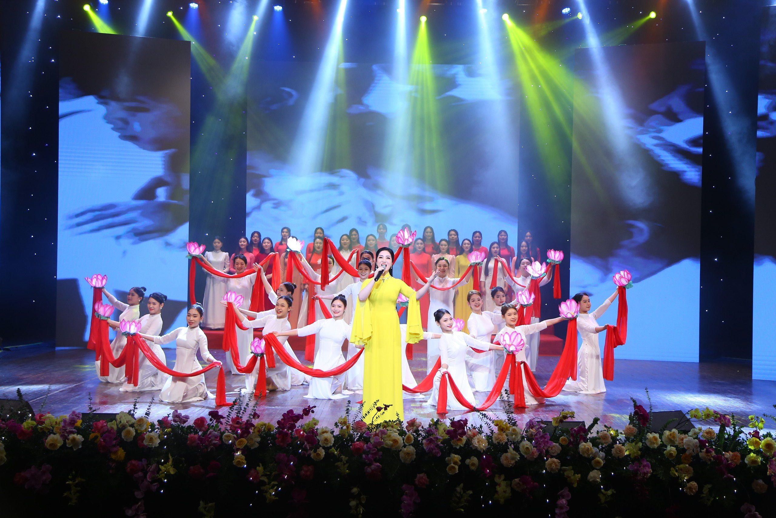 Màn hát múa Ca ngợi Hồ Chủ tịch do NSƯT Phương Nga cùng Dàn Hợp xướng HVANQGVN và Vũ đoàn múa Trường CĐNT Hà Nội biểu diễn mở màn Chương trình
