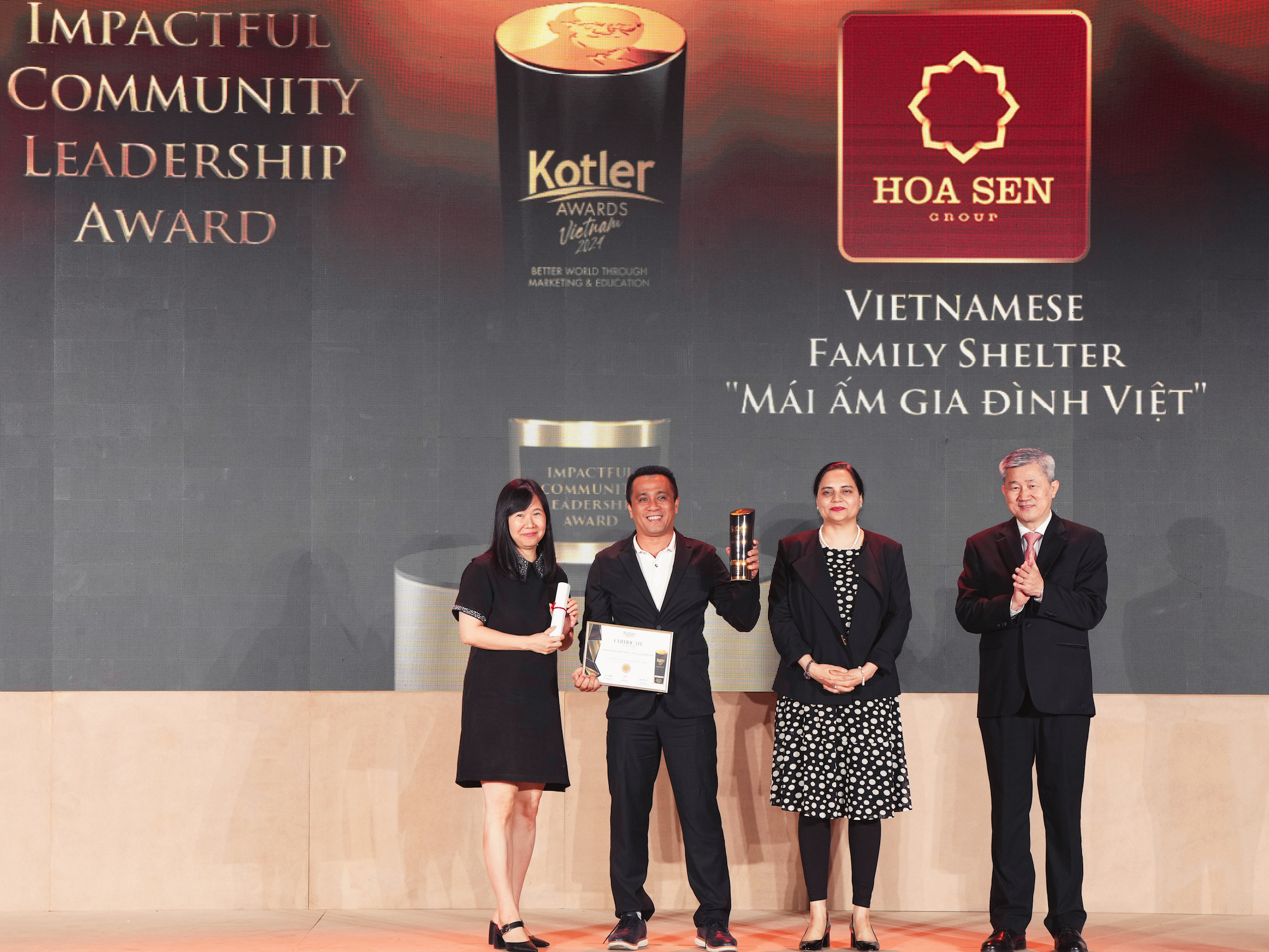 Chương trình thiện nguyện Mái Ấm Gia đình Việt của Tập đoàn Hoa Sen đã vượt qua nhiều đề cử và xuất sắc giành giải thưởng Excellent Impactful Community tại Kotler Awards Việt Nam 2024. |