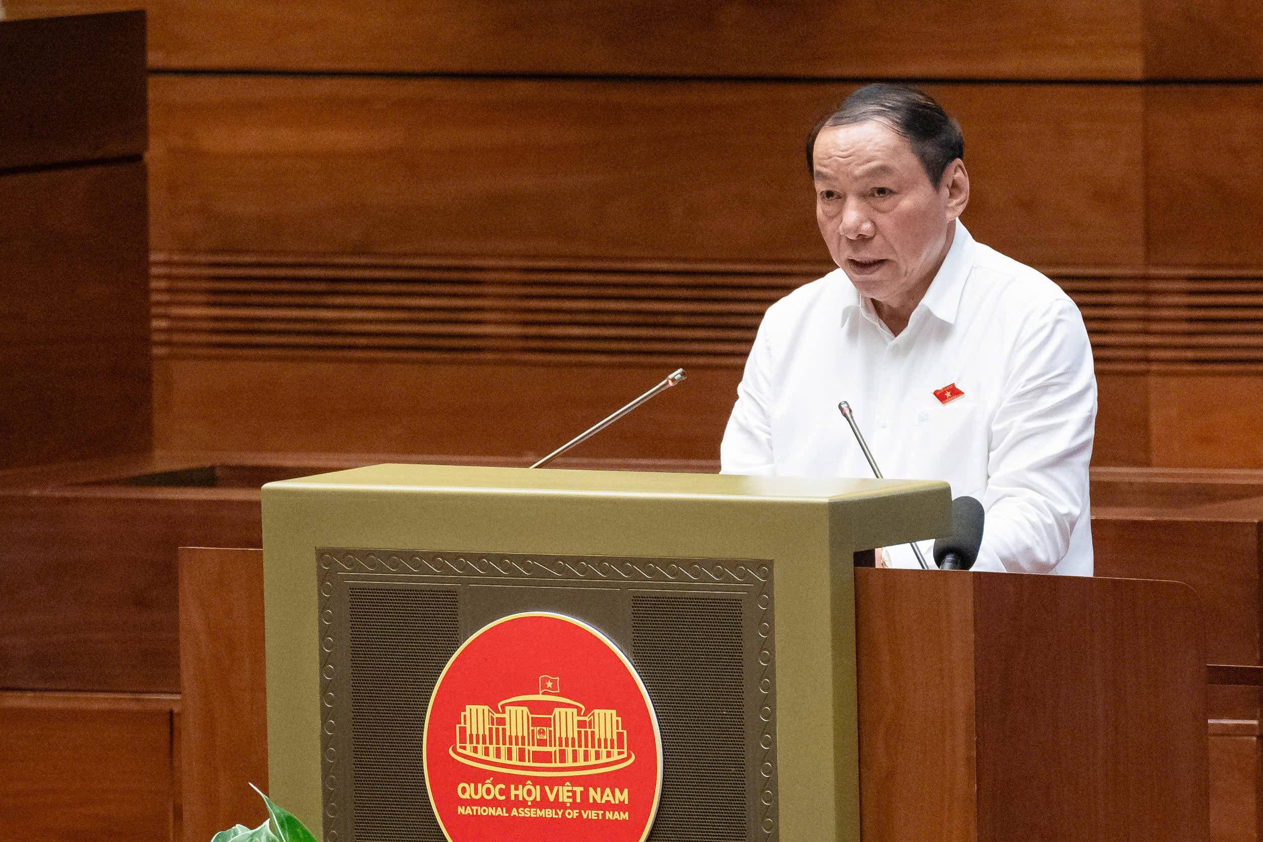 Bộ trưởng Bộ Văn hóa, Thể thao và Du lịch Nguyễn Văn Hùng trình bày Tờ trình. |