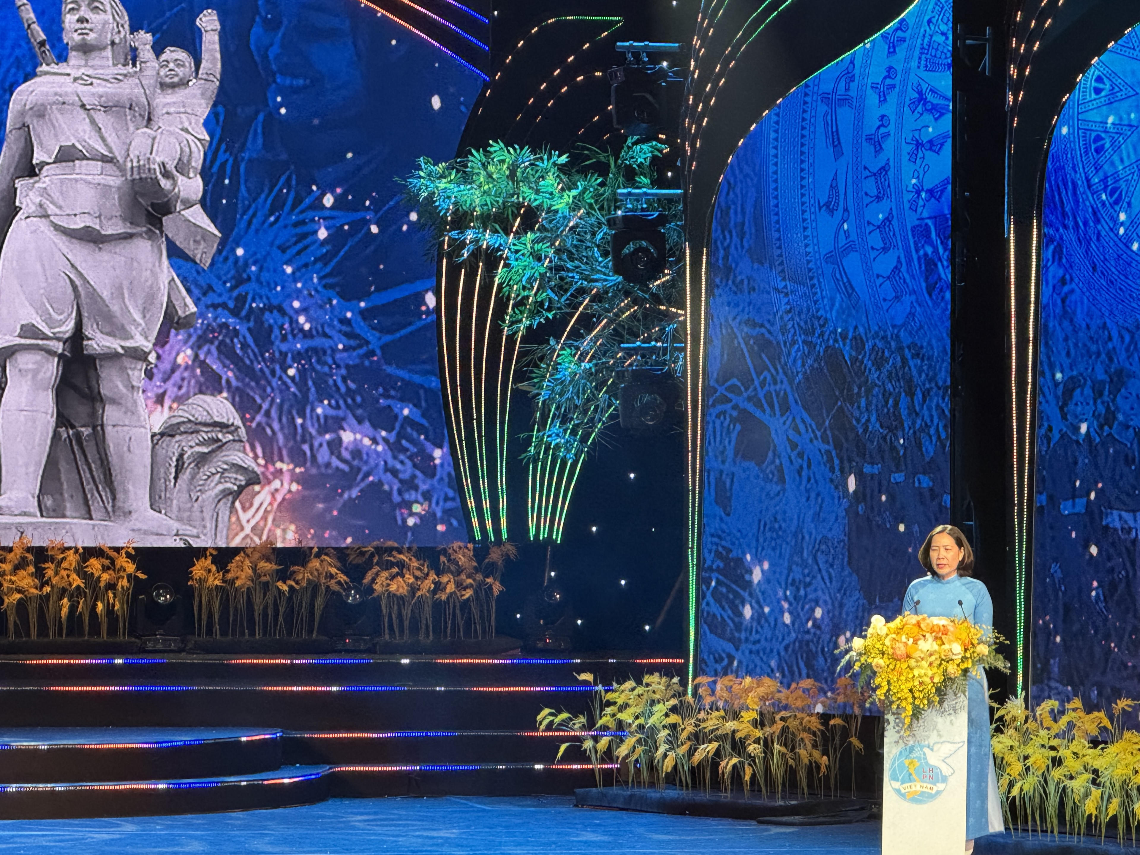 Phát biểu khai mạc chương trình, Chủ tịch Hội Liên hiệp Phụ nữ TP Hà Nội Lê Kim Anh bày tỏ niềm tự hào, từ năm 1965 đến 1974, phong trào “Ba đảm đang” toàn miền Bắc đã có 42 nữ anh hùng, 9 đơn vị nữ anh hùng được tôn vinh; 1.718 chị em được tặng thưởng huy hiệu Bác Hồ, trên 5.000 chị em là chiến sỹ thi đua toàn quốc, gần 4 triệu hội viên đạt danh hiệu phụ nữ “Ba đảm đang”.