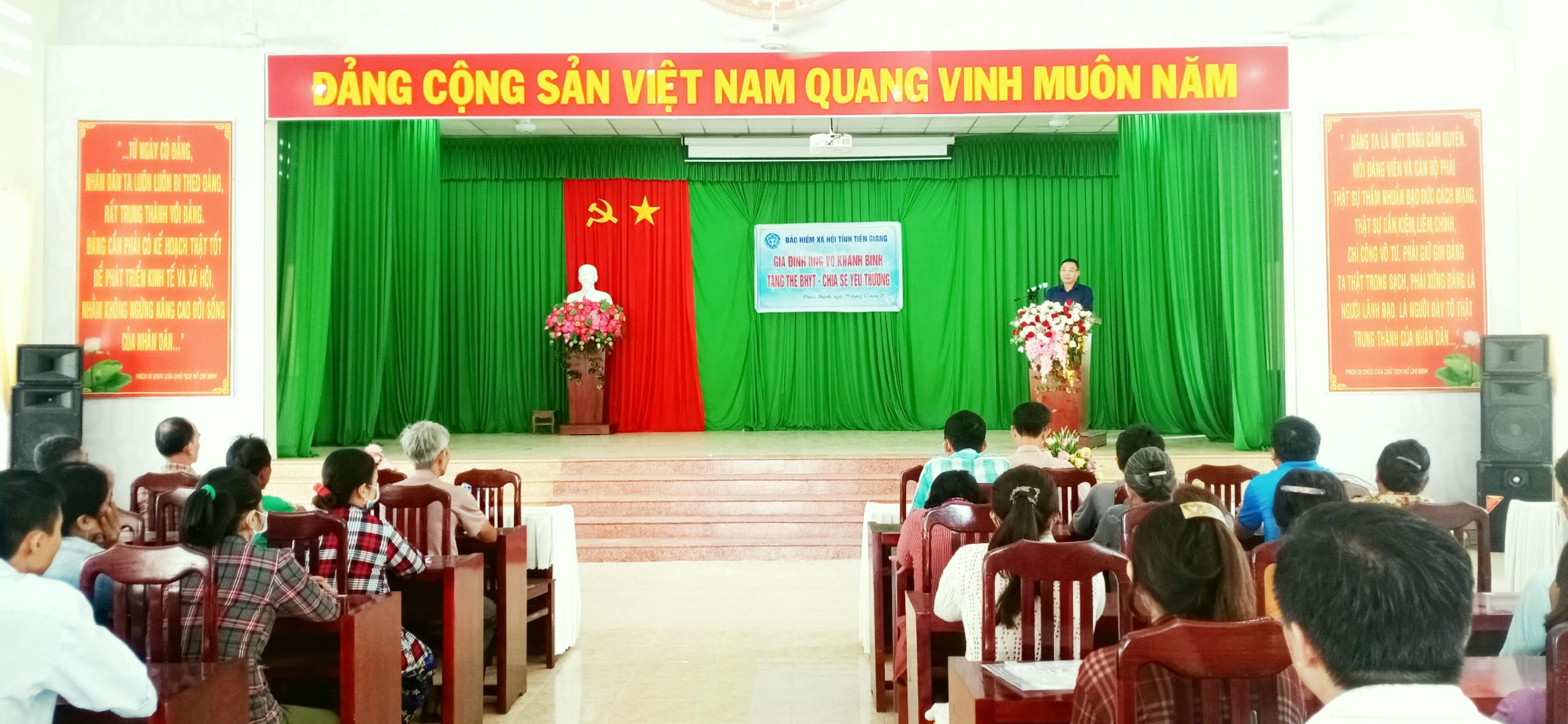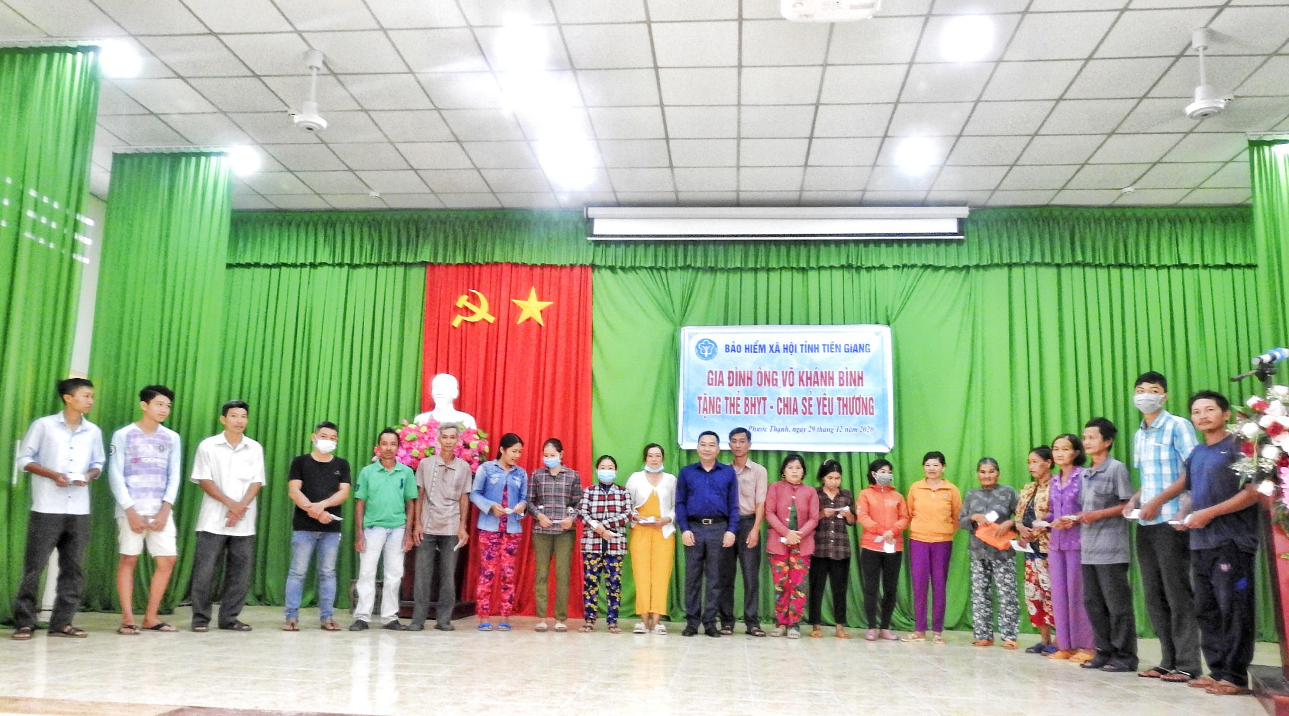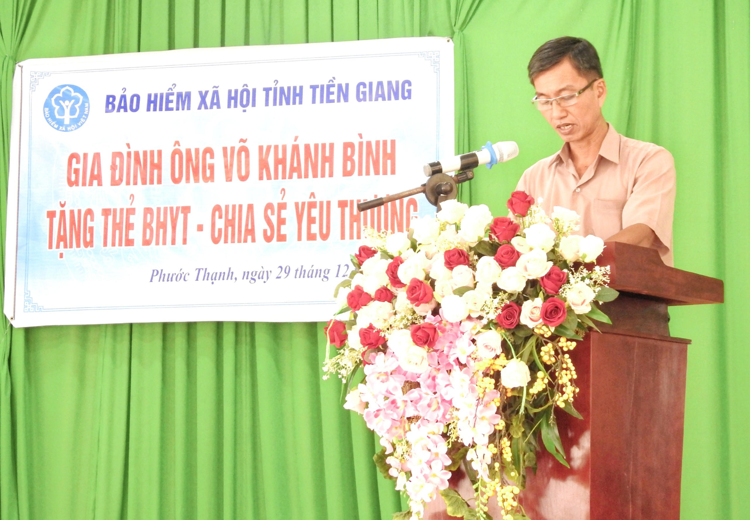 Ngày 29/12, tại UBND xã Phước Thạnh, 86 thẻ BHYT được ông Võ Khánh Bình đại diện giao đình trao tặng đến 86 thành viên các hộ gia đình có mức trung bình trên địa bàn xã Phước Thạnh – Tp. Mỹ Tho trong chương trình “Tặng thẻ BHYT - Chia sẻ yêu thương”. Đây là lần thứ 02 ông tham gia trao tặng thẻ BHYT tại địa phương này.
