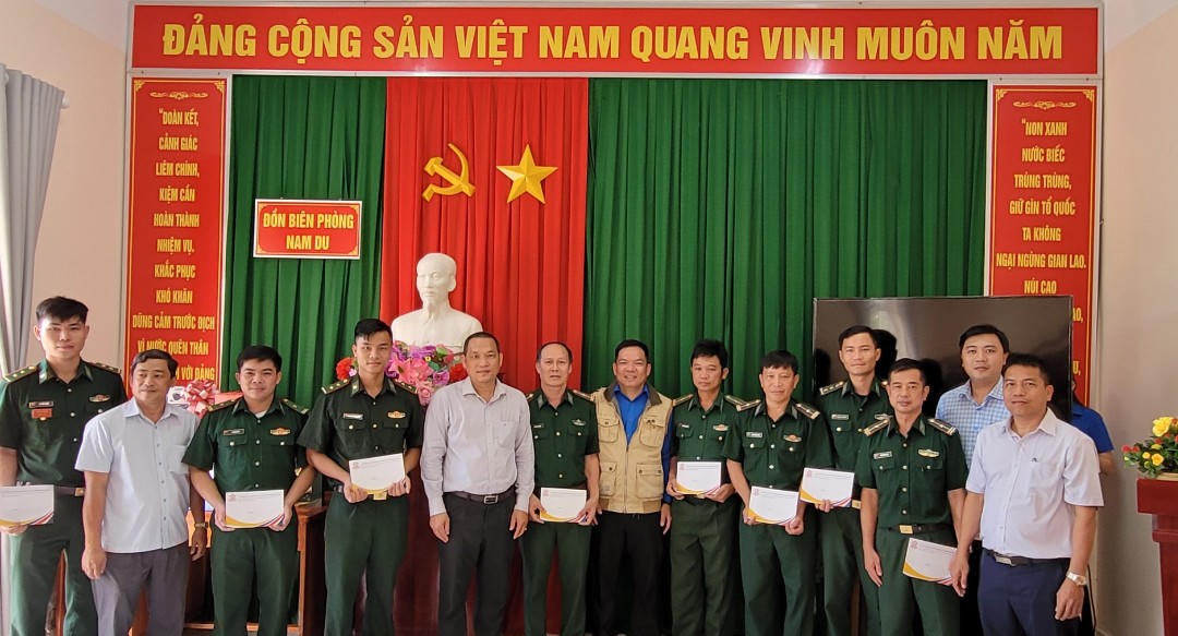 Trao quà tại Đồn biên phòng Nam Du. Ảnh: Nhựt Nam |