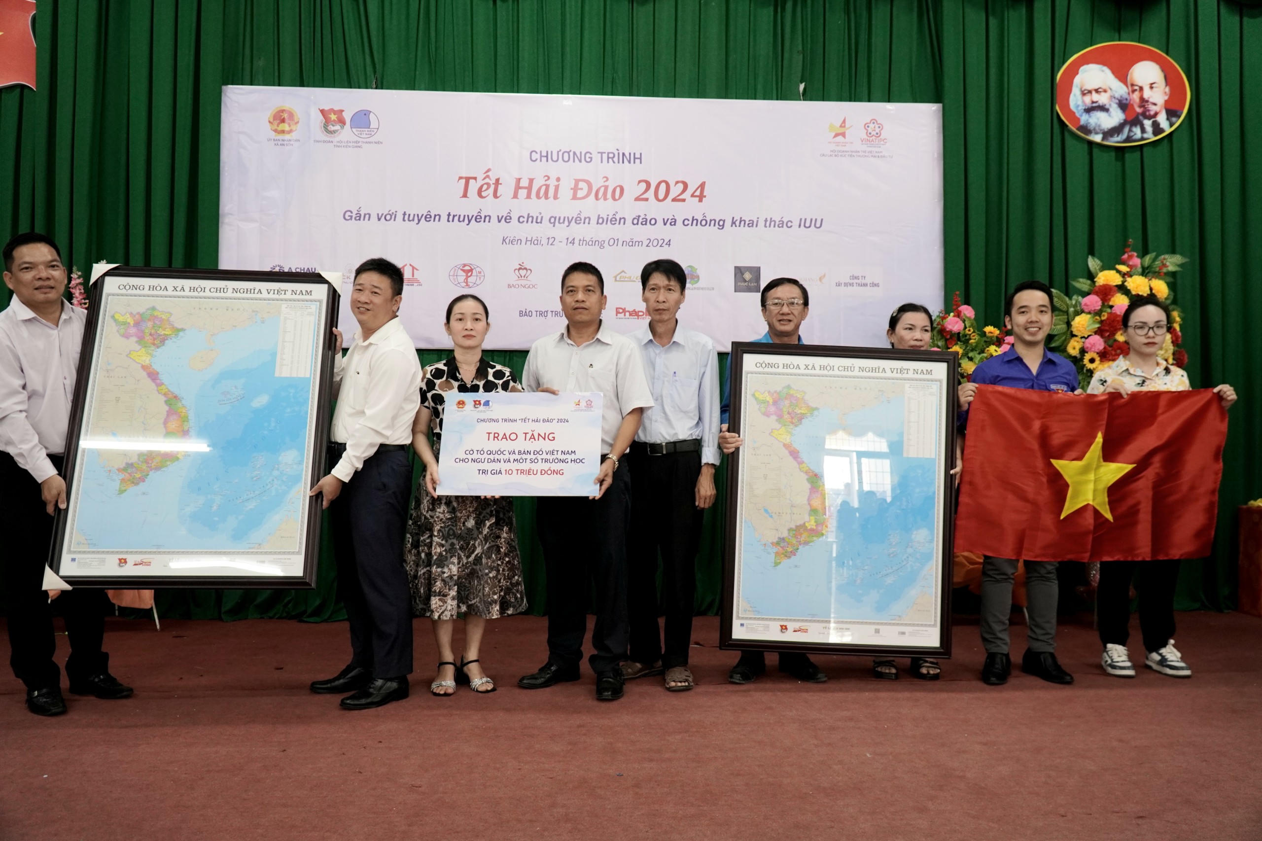 Kế đó, Tỉnh đoàn Kiên Giang phối hợp với CLB XTTM-ĐT Doanh nhân trẻ Việt Nam và chính quyền địa phương huyện Kiên Hải đã trao tặng 100 suất quà (1 triệu đồng/suất) đến các gia đình chính sách, hộ gia đình có hoàn cảnh khó khăn, học sinh vượt khó, đoàn viên khó khăn...