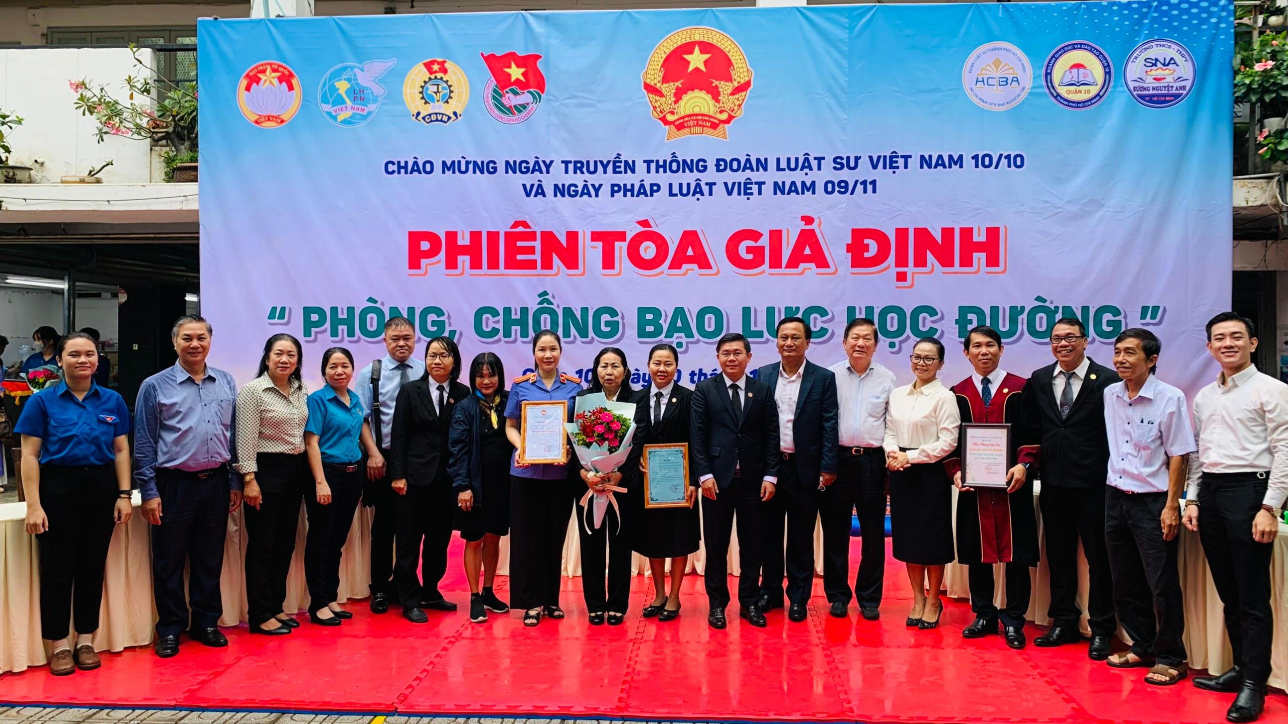 Ngày 10/10/2022, tại Trường THCS-THPT Sương Nguyệt Anh (Quận 10), Đoàn Luật sư TP HCM đã tổ chức phiên tòa giả định về bạo lực học đường nhằm mục đích tuyên truyền, phổ biến, giáo dục pháp luật cho các cháu đang lứa tuổi học trò. Buổi diễn án có sự tham gia của gần 20 Luật sư thuộc Đoàn Luật sư TP HCM và gần 1.500 học sinh cùng thầy cô của Trường.