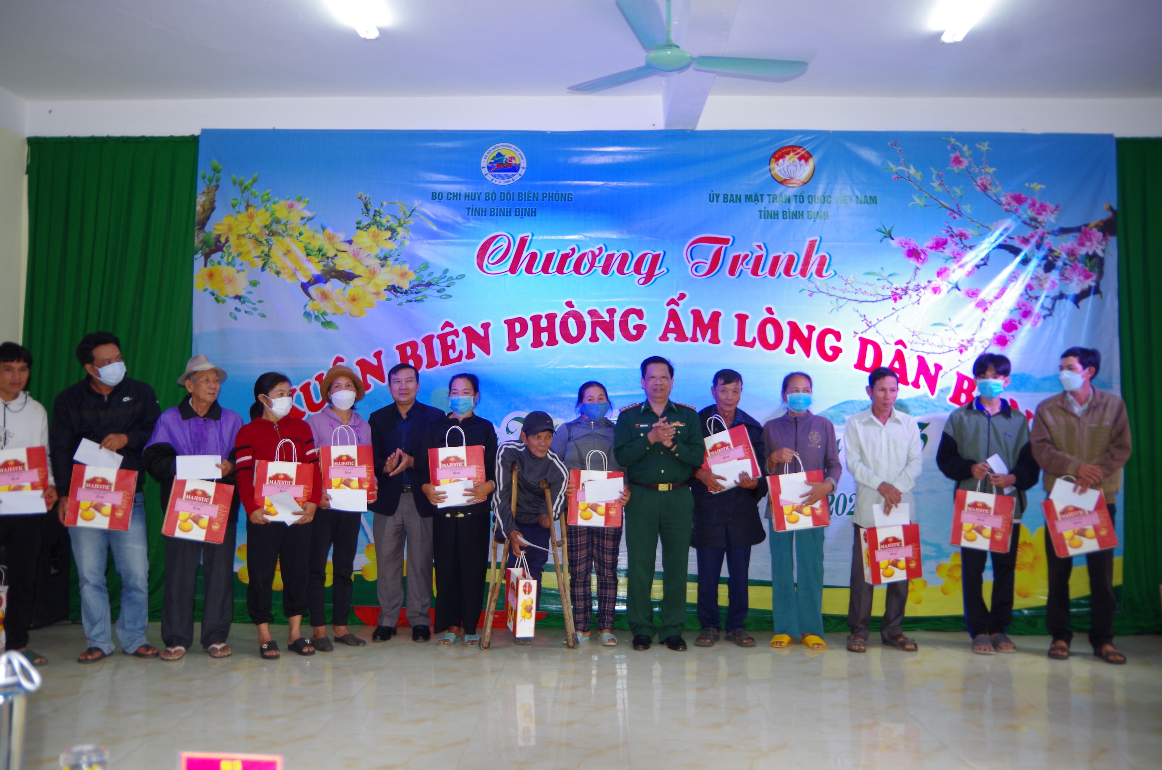 Tại chương trình, 120 suất quà (với trị giá 500.000 đồng/suất) gồm tiền mặt, bánh chưng và các loại nhu yếu phẩm (tổng trị giá 60 triệu đồng), đã được trao tặng cho những người dân khu vực biên giới biển của 3 xã Cát Khánh, Cát Thành và Cát Hải, huyện Phù Cát.