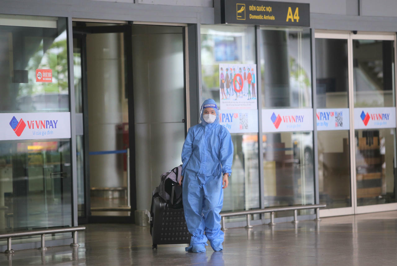 Người dân về từ TP HCM sẽ được kiểm tra thông tin, hướng dẫn cách ly ngay sau khi xuống sân bay.