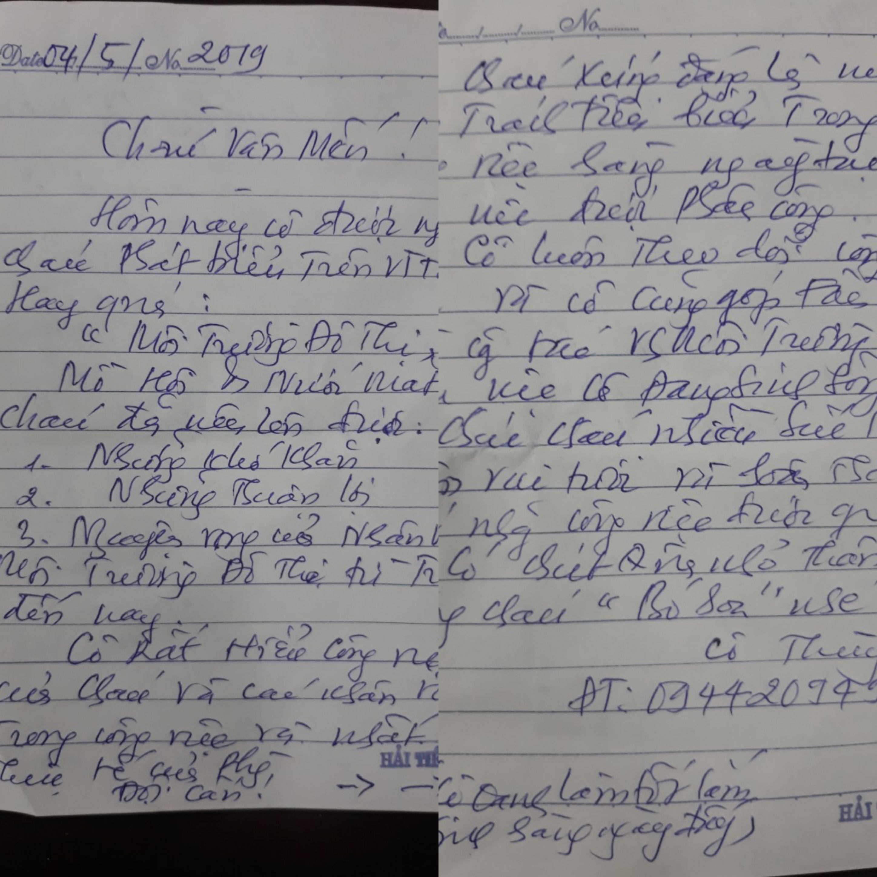 Bức thư được viết vào ngày 04/05/2019, mặc dù những nét chữ trên bức thư không được đẹp nhưng nó thể hiện sự chau chuốt của người viết. Và hơn hết sức mạnh tinh thần, tình cảm mà bức thư đem lại cho chị Vân nói riêng và công nhân môi trường nói chung khiến họ có thêm động lực để cống hiến hết mình cho nghề.