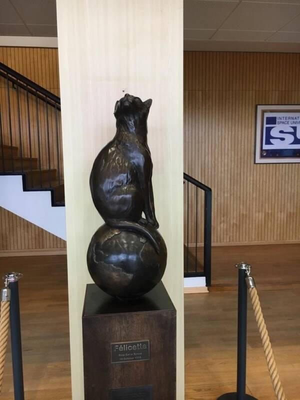 Bức tượng tôn vinh mèo Félicette ở Strasbourg, Pháp. Ảnh: Twitter
