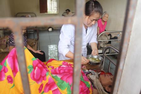 “Ban đầu vào làm ở đây cũng ngại lắm, nhất là việc chăm sóc bệnh nhân nam, giờ ở đây rồi lại yêu nghề hơn vì các đối tượng đều là những người kém may mắn hơn mình và hơn xã hội”, chị Châu nói.