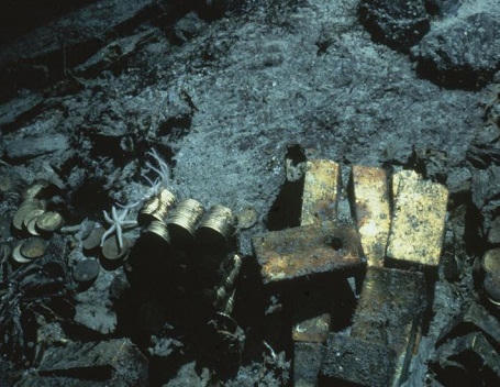 Bắt đầu trục vớt theo hình thức cuốn chiếu. Con tàu thứ nhất, các thiết bị và thợ lặn được thả xuống thăm dò. Mọi hoạt động thao tác đều được theo dõi qua camera. Thợ lặn báo cáo con tàu này đã bị khai thác, nhưng do sử dụng thuốc nổ không đúng quy cách nên tàu bị phá hủy biến dạng, một lớp cát dày phủ kín. Thâm nhập vào sâu bên trong khoang tàu rất khó khăn và nguy hiểm.