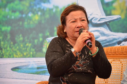 | Bà Nguyễn Thị Hằng (mẹ liệt sỹ Hoàng Ánh Đông) đại diện cho nhiều bà mẹ thể hiện sự xúc động lẫn tự hào. |