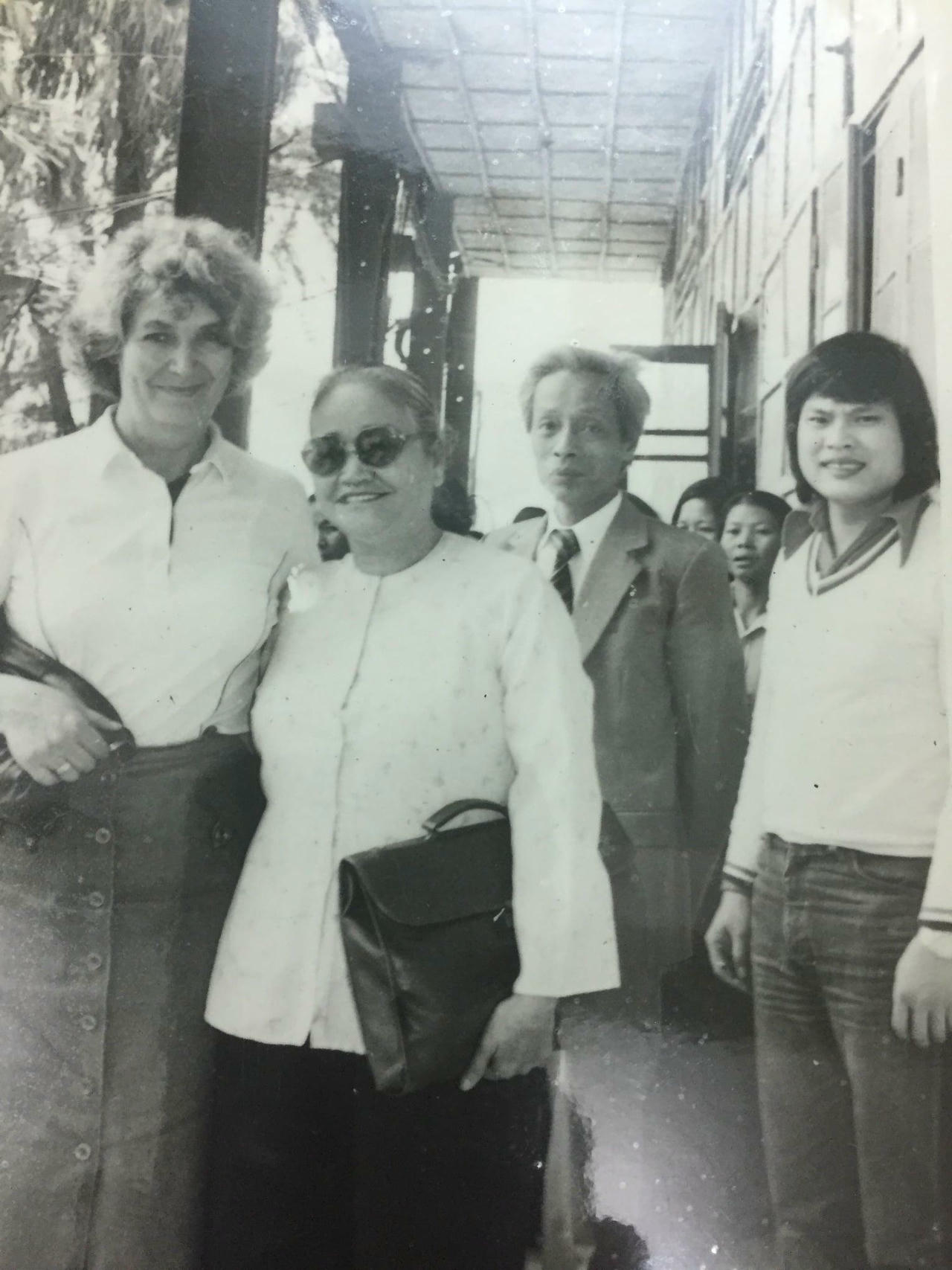 Bà Nguyễn Thị Định chụp với phu nhân trưởng đoàn chuyên gia cầu Thăng Long. Tác giả đứng bìa phải. |