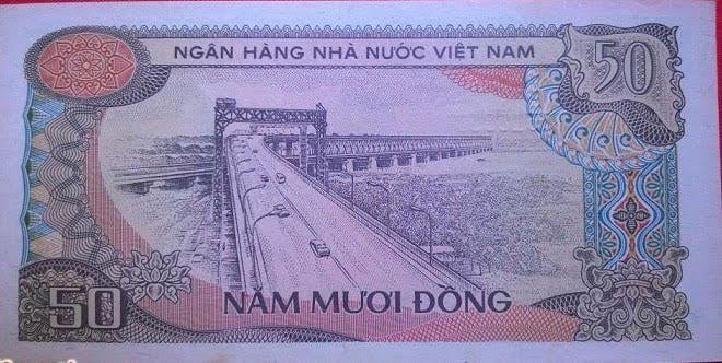 Chuyện cũ cầu Thăng Long (Kỳ15): Những chuyện ít biết về cây cầu mang tên Thăng LongTờ tiền 50 đồng do Ngân hàng Nhà nước phát hành năm 1985 có hình cầu Thăng Long. Chỉ có điều “thú vị” là hình cầu Thăng Long được hoạ sỹ vẽ trên tờ tiền khi đó chắc không tham khảo hoặc tìm hiểu những người chuyên môn về cầu Thăng Long, nên hoạ sỹ vẽ cả cái giàn cần cẩu lắp dầm cầu khi cầu đang xây dựng! Chắc hoạ sỹ và cơ quan in tiền nghĩ là mấy giàn cần cẩu này là một phần không thể thiếu của cầu Thăng Long!!! Thực tế cầu Thăng Long khi đưa vào sử dụng thì các cần cẩu này phải tháo dỡ!