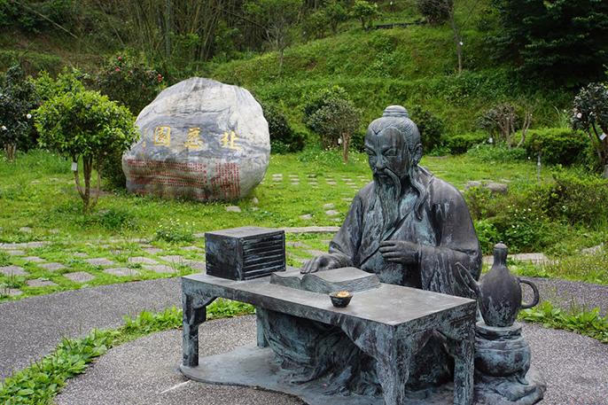 | Bức tượng tái hiện lại cảnh Lục Vũ viết tác phẩm “Trà Kinh”. |