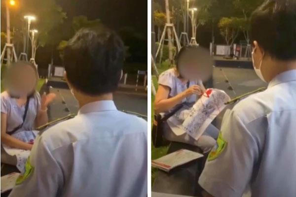 Cô gái ngồi thêu trong công viên "cãi cùn" lực lượng chống dịch