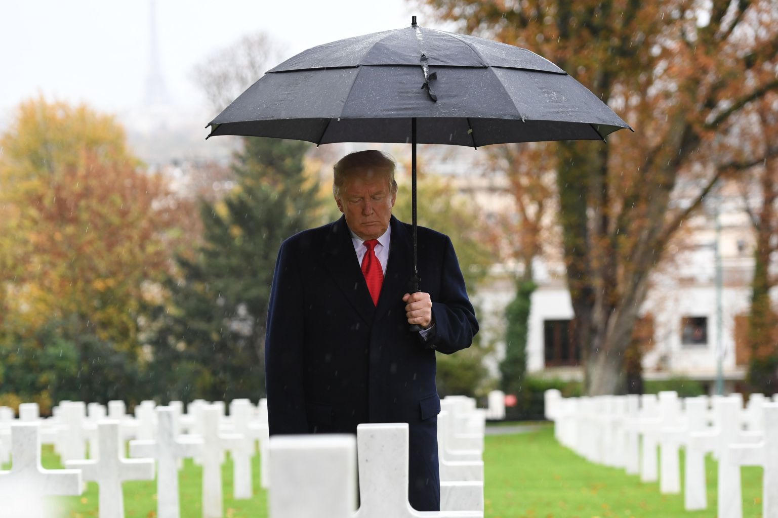 "Tình hình thời tiết ở Paris được cho là khiến Donald Trump không thể tới bày tỏ lòng tôn trọng với những lính Mỹ ngã xuống vì tự do tại nghĩa trang Aisne-Marne chiều nay", Francois Heisbourg, một cố vấn thân tín của Tổng thống Macron, viết trên Twitter.