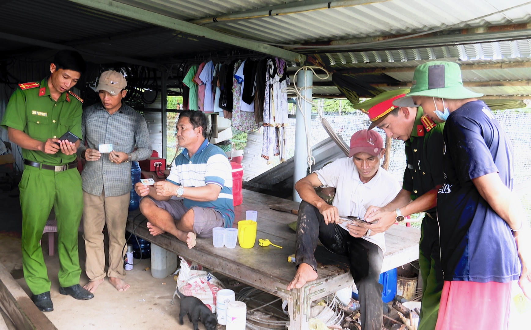Sau khi tàu, ghe cập bến, các ngư dân trên địa bàn xã Vĩnh Hậu, huyện Hòa Bình được lực lượng Công an hướng dẫn đăng ký tài khoản định danh điện tử. |
