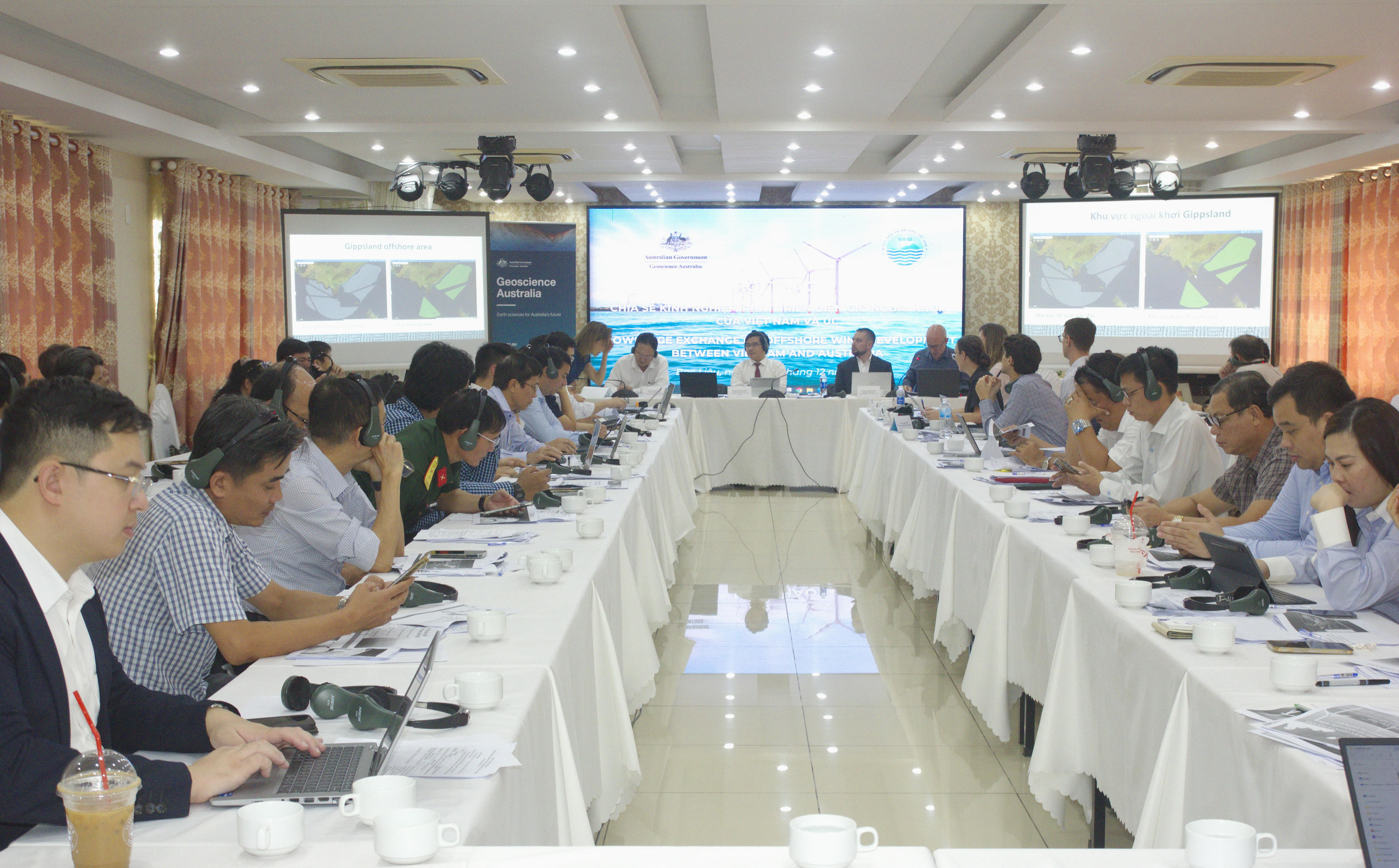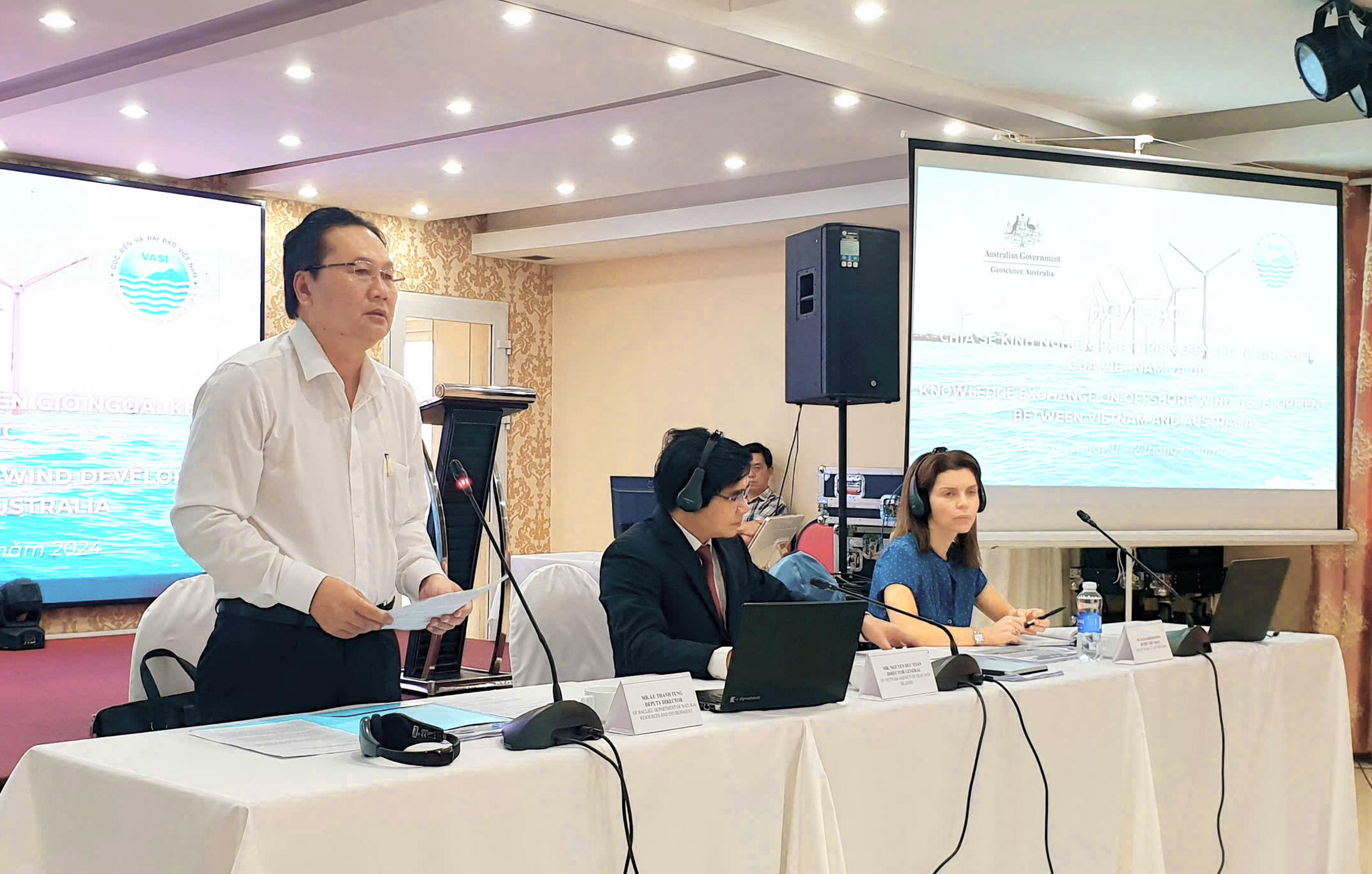 Đồng thời, các đại biểu đã chia sẻ kinh nghiệm phát triển điện gió ngoài khơi giữa Australia và Việt Nam (tổng quan về điện gió ngoài khơi trên thế giới và tình hình triển khai tại Australia); dữ liệu khảo sát, điều tra cơ bản tại các khu vực biển Việt Nam phục vụ phát triển điện gió ngoài khơi; hệ thống thông tin không gian biển của Australia: Hỗ trợ quy hoạch không gian biển; các lĩnh vực tiềm năng cho việc hợp tác và hỗ trợ kỹ thuật giữa Việt Nam và Australia.