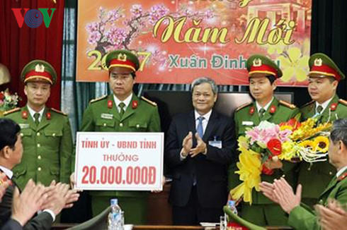 | Thượng tá Nguyễn Công Khôi, Trưởng phòng Cảnh sát hình sự (PC45, Công an tỉnh Bắc Ninh) Người cầm bảng phần thưởng. |
