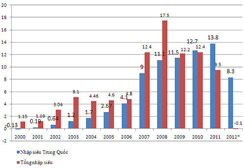 "Tức là ngoài nhập siêu, chúng ta còn phụ thuộc thêm về mặt tài chính đối với Trung Quốc và đây là điều rất đáng lo ngại, cần phải xem xét kỹ" - ông Doanh nói