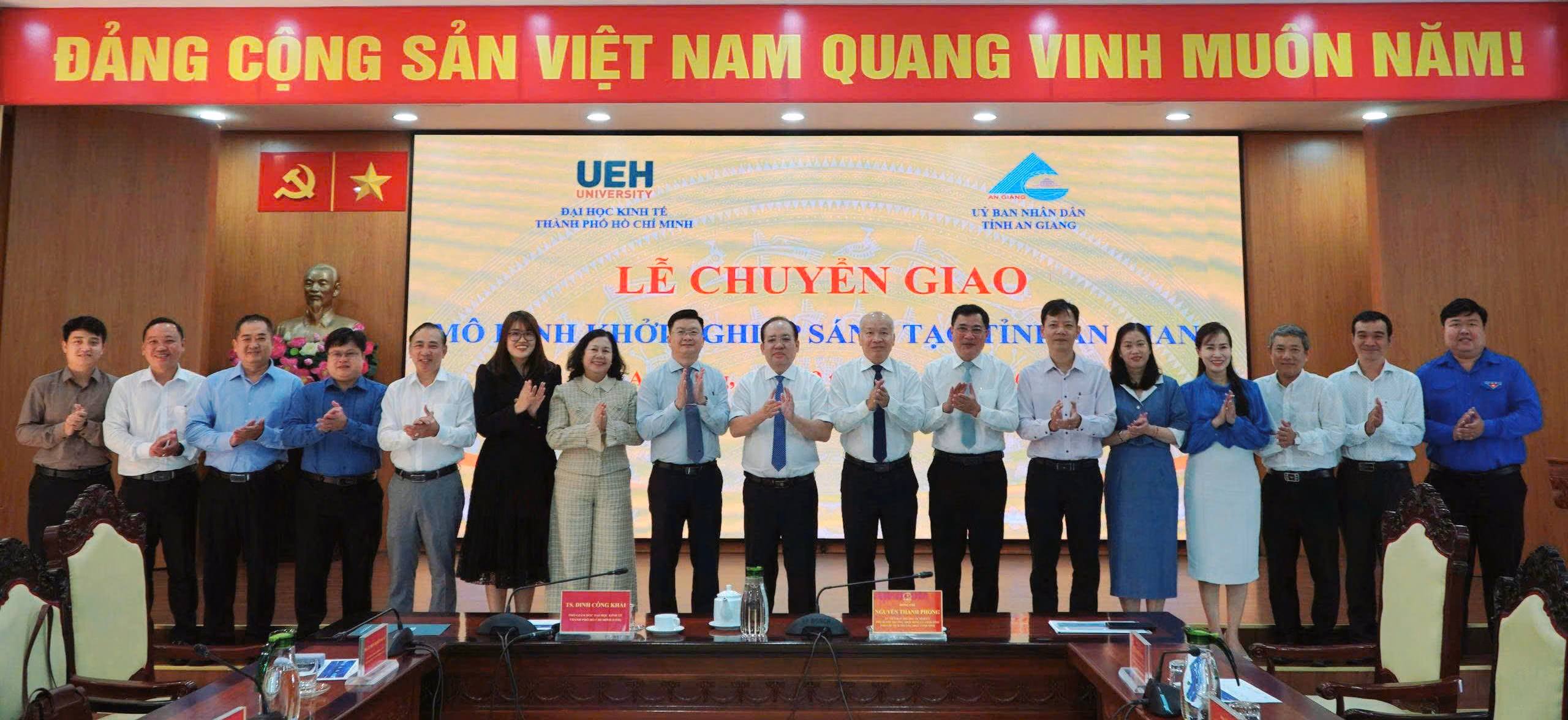 Sở Khoa học và Công nghệ tỉnh An Giang và Viện Đổi mới sáng tạo Đại học Kinh tế TP HCM mới ký kết biên bản chuyển giao mô hình khởi nghiệp sáng tạo tỉnh An Giang; đồng thời bấm nút ra mắt Nền tảng trực tuyến hỗ trợ ươm tạo khởi nghiệp sáng tạo tỉnh An Giang.