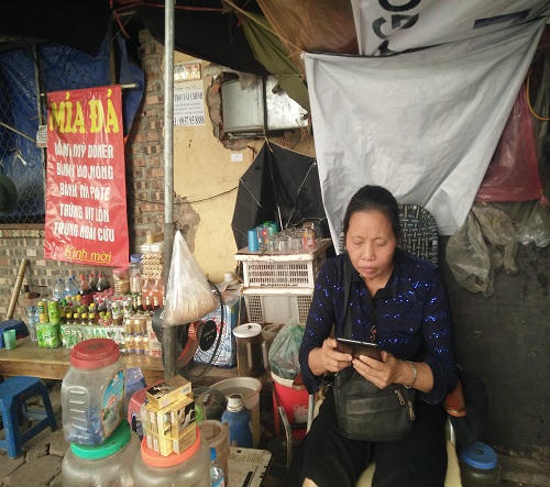 Bà mưu sinh bằng hàng nước ở ngã tư đầu cầu Cống Mọc – Quan Nhân đã ngót nghét 35 năm. Bà bắt đầu dọn hàng từ 6h sáng và kết thúc công việc khi đêm đã khuya. Vì thế mà bà nắm rất rõ tình hình giao thông ở khu vực này.