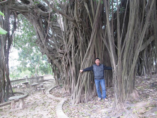 Quả thật đúng như lời lão nông kể, từ đằng xa, chúng tôi đã thấy dáng cây oai vệ đứng sừng sững ngay mặt đê. Khi lại gần chỉ còn cách vài trăm mét, bóng dáng của đồng chí trưởng thôn Giang trở lên lọt thỏm giữa “thần mộc”, dù anh này thực tế cao hơn 1m70.