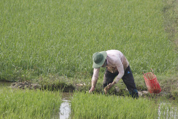 Dừng xe bên đường chúng tôi xuống cánh đồng trò chuyện với những người nông dân đang làm việc trên đồng ruộng, khi thấy chúng tôi đưa mắt nhìn khắp cánh đồng tỏ ra ngạc nhiên, đoán biết là mấy chú phóng viên đi viết bài anh Dũng vừa làm cỏ dưới ruộng lúa vừa nói với lên: “Các chú tìm phụ nữ trên đồng à, ở đây có đốt đèn tìm cũng không thấy người đàn bà nào ra ruộng đâu. Phụ nữ ở đây làm việc khác, chỉ có cánh đàn ông chúng tôi ra ruộng đi cấy thôi. Nhiều người phụ nữ ở làng này thậm chí còn không biết ruộng nhà mình ở đâu, dài rộng ra sao.