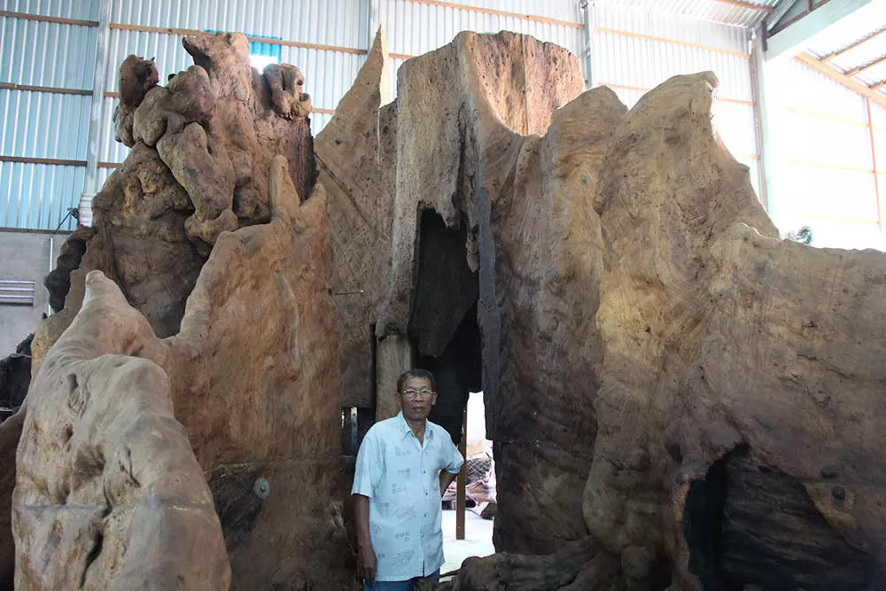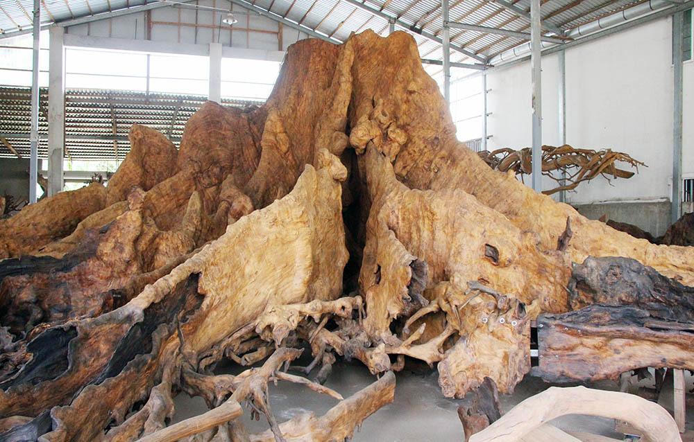 Gốc "cây bàng đá ông" được ông Mai Kiên bảo quản trong kho ở TP Sóc Trăng.