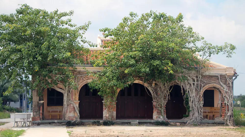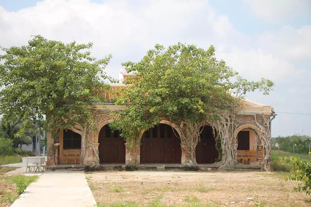 Ngôi đình được 2 cây bồ đề buông rễ ôm chặt