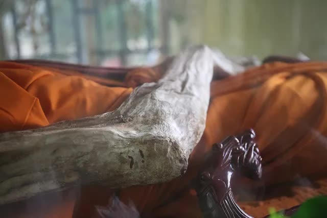 Thi hài hòa thượng không bị phân hủy, chỉ khô lại như xác ướp (Ảnh: Thanh niên) |