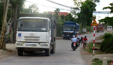 Riêng ở đoạn đường Phan Đình Phùng nối dài (còn gọi là đường Trại Gà) thuộc địa phận xã Thuận Đức, TP.Đồng Hới, lực lượng Cảnh sát giao thông – Công an TP.Đồng Hới cho biết, trước đây đường này có cắm biển quy định trọng tải gần cầu Trại Gà là 10 tấn. Nhưng thời gian gần đây, không hiểu sao biển biến mất. Và ngày ngày, hàng chục lượt xe tải chở vật liệu của Tập đoàn Sơn Hải (trụ sở tại đường Hữu Nghị, TP.Đồng Hới) tải trọng trên 20 tấn vẫn tấp nập xuôi ngược qua tuyến này. Chỉ riêng trong sáng 29/8, chúng tôi đếm được hơn 10 chiếc xe tải của Tập đoàn này “cày ải” đoạn này.