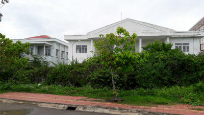 Theo thiết kế, trụ sở 3 cơ quan nói trên quay mặt ra đường 30-4. Thế nhưng, theo ghi nhận của chúng tôi, toàn bộ mặt tiền của 3 cơ quan này là cây cối mọc um tùm cao hút mái nhà, đất còn mương trũng... hoàn toàn không có lối vào. Theo người dân địa phương cho biết, trụ sở CCTK và KBNN đã xây dựng hoàn thiện xong từ hai năm qua nhưng do không có lối vào nên 2 cơ quan này không thể hoạt động, đóng cửa và phải thuê người trông giữ. Theo quan sát của chúng tôi, 2 trụ sở cơ quan nói trên đã bị xuống cấp, tường bong tróc, nền có dấu hiệu sụp lún... Riêng công trình trụ sở CCCT, do chưa có đường vào nên nhà thầu xây dựng cầm chừng để chờ giải tỏa lối vào.