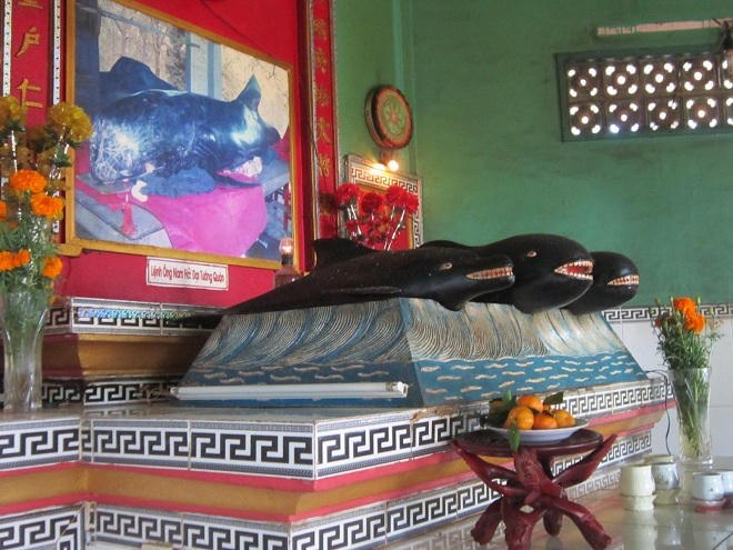 Mỗi khi có thuyền bè gặp nạn, ngư ông Nam hải đều không quản ngại cứu giúp đưa con người bình an vào bờ. Lòng dân cảm kích, thờ phụng Nam hải Đại tướng quân trong lòng, suy tôn là “cá Ông”. Khi cá Ông “thác”, người dân không quên đưa ông vào bờ an táng, lập dinh thờ phụng.