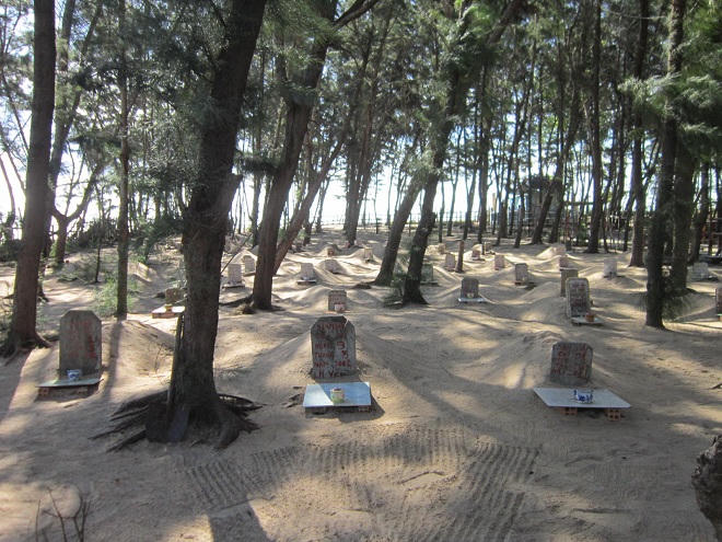Ở khu nghĩa trang này hiện có khoảng hơn 70 ngôi mộ chưa cải táng. Tất cả những ngôi mộ đều có hướng nhìn ra biển. Đầu mộ đều có bát hương và bia đúc bê tông ghi rõ những thông tin “Nam hải chi mộ” cùng ngày tháng năm Ông “lụy”, ghe đưa vào bờ.