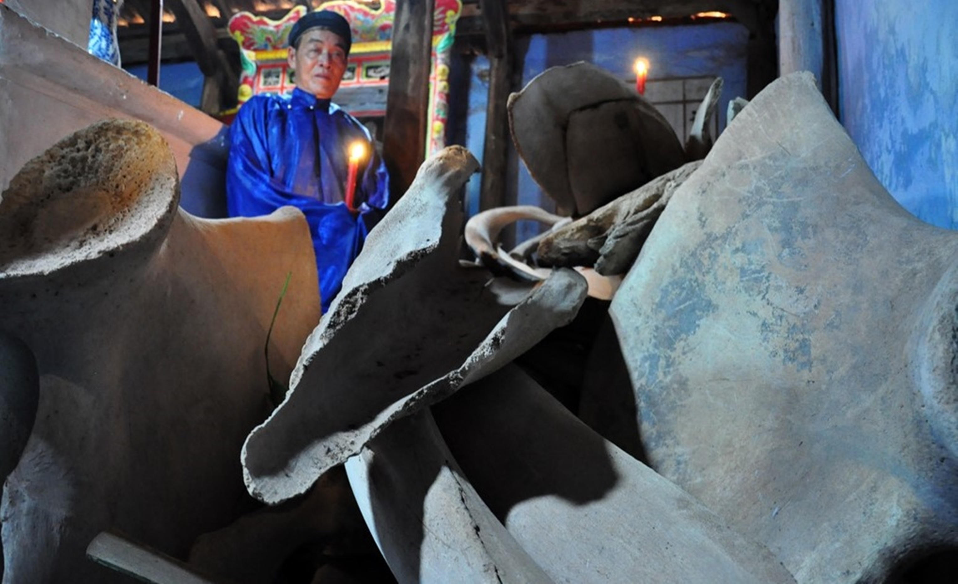 “Cách đây chừng 300 năm, Ngài cá Ông dạt vào bờ, hàng trăm người dân trên đảo tập trung khiêng rước nhưng ông không chịu đi. Nhiều thợ lặn lặn xuống sâu tận 36 thước mà ông không chịu dịch chuyển. Rồi khi đúng ngọ, Ngài mới chịu men theo sóng nước, để người dân đưa xuống phần huyệt đã đào”, ông Ngã cho biết.