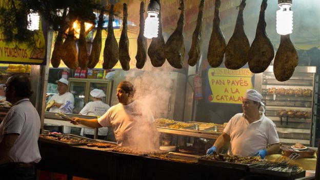 Vào lúc 10 giờ tối ở khu phố La Latina của Madrid, một trong những khu vực cổ nhất của thành phố, các con đường lát sỏi rộn ràng tiếng người nói chuyện, tiếng xáo nấu và ngập tràn mùi thơm của các món như gambas al ajillo (tôm nấu với tỏi) và cocido Madrileño (đậu hạt hầm với thịt heo và xúc xích chorizo)… Các cửa hàng ở đây tấp nập làm ăn trong khi nhiều nơi khác trên thế giới, mọi đầu bếp đã treo tạp dề và kết thúc một ngày làm việc mệt mỏi của mình.