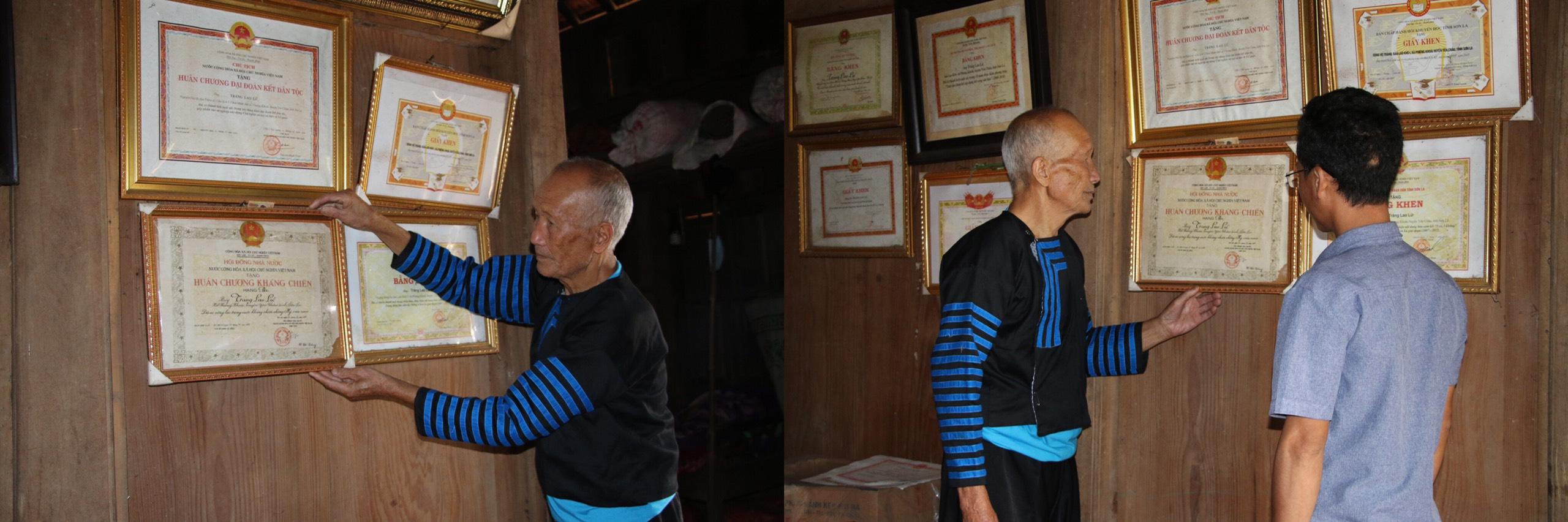 Ông Tráng Lao Lử nhớ lại ký ức được Đảng, Nhà nước tặng bằng khen. |